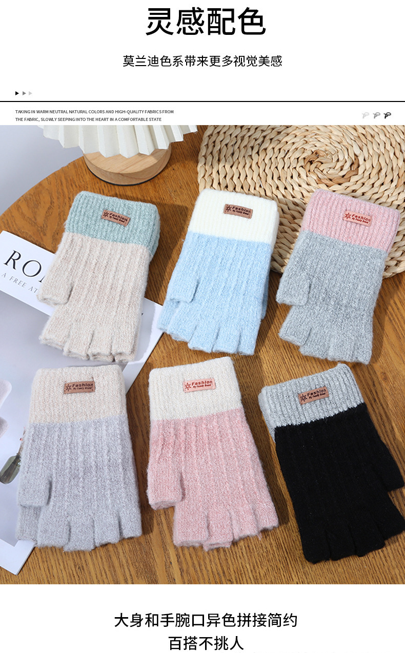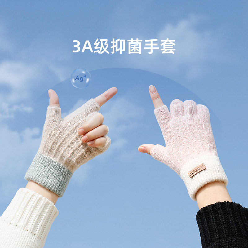毛糸ニット手袋女性秋冬保温ベルベット指手袋学生半指書く屋外サイクリングかわいい