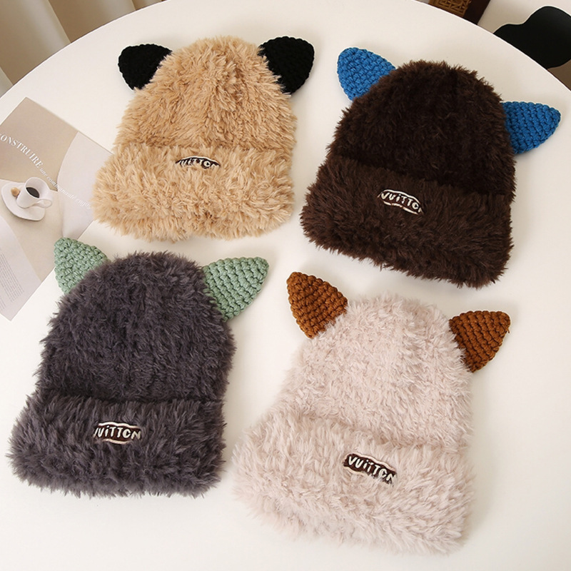 韓国版の子供は冬に手で可愛い耳の毛の帽子を作ります。