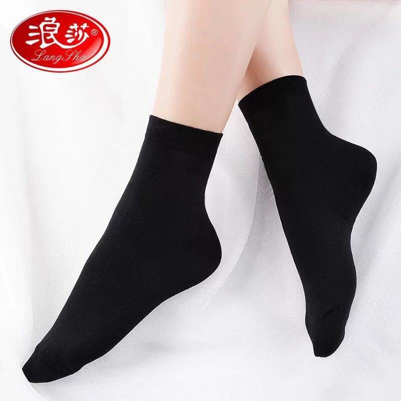 浪莎純黒中筒婦人靴下四季靴下婦人綿靴下吸汗ストッキングビジネス四季黒商超単単