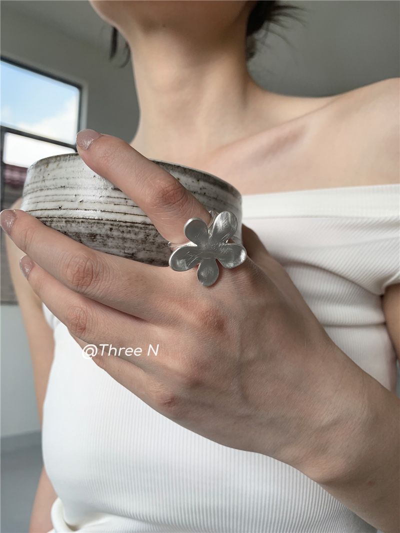 日韓重工銀色伸線花指輪シンプルレトロins真鍮金属フランス人差し指リング女