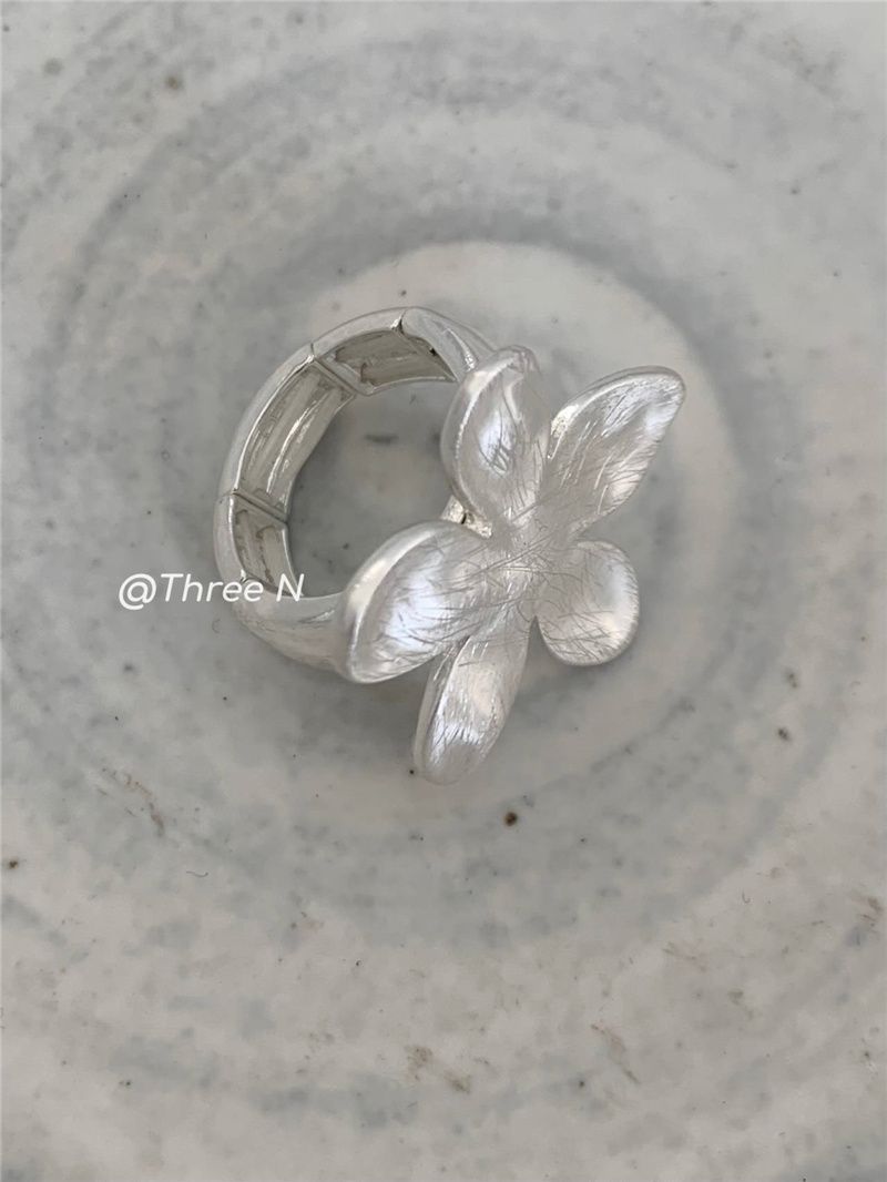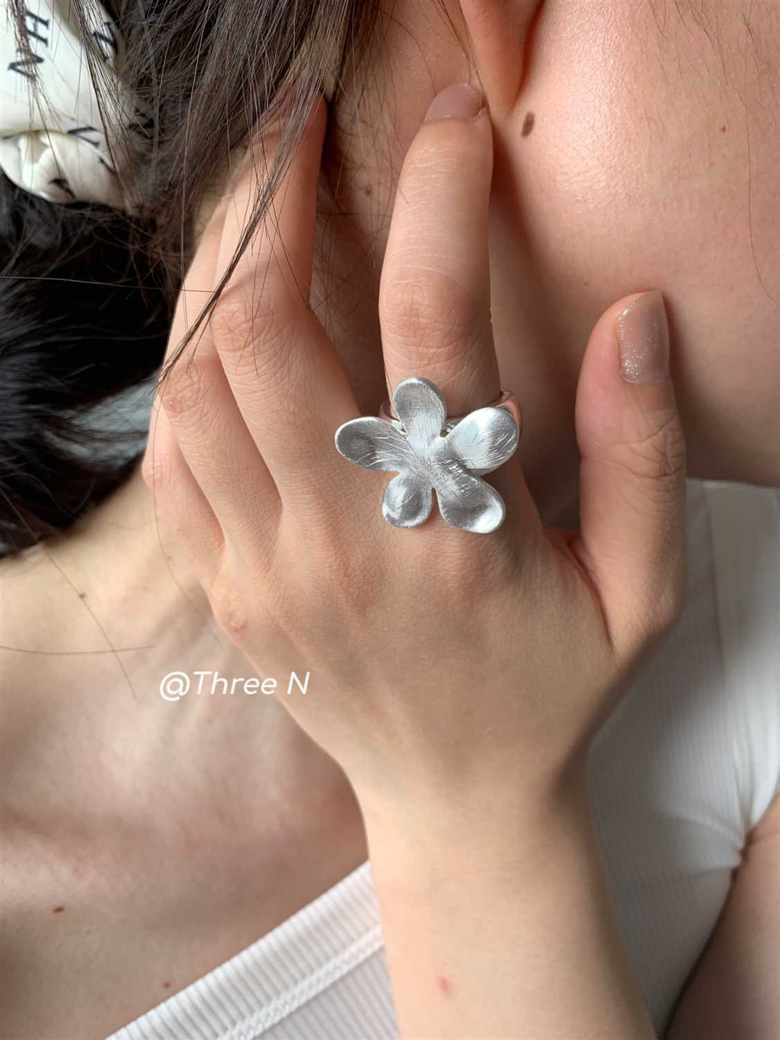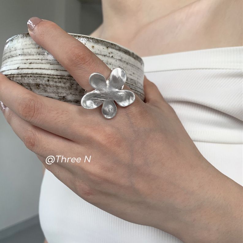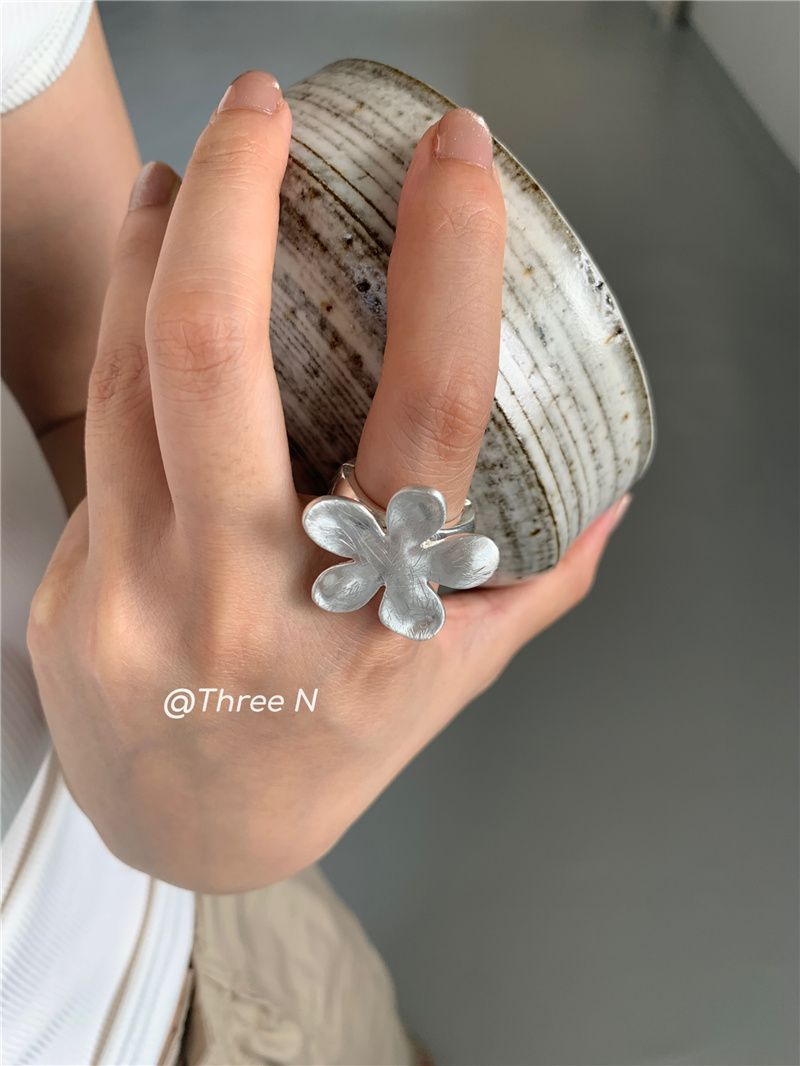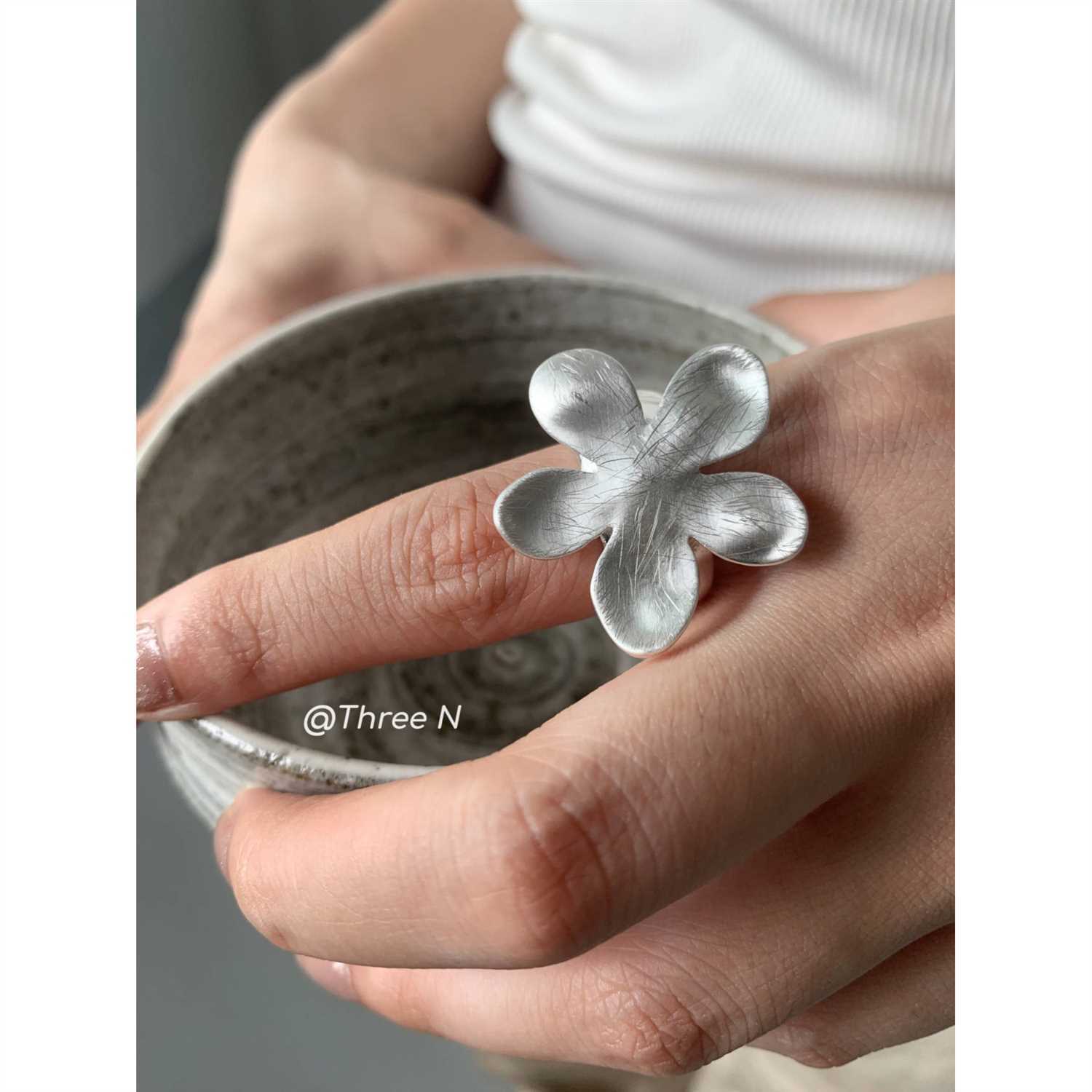 スリーn重工銀色の線引き花の指輪は極めて簡単で弾力的にinsの日常の人差し指の指輪を調節します。