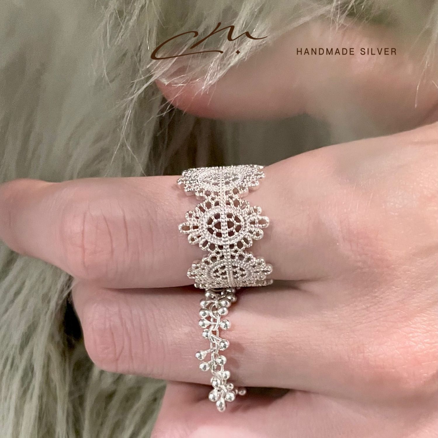 レースシリーズの大衆デザインs925銀メッキ日系レース少女風復古指輪女