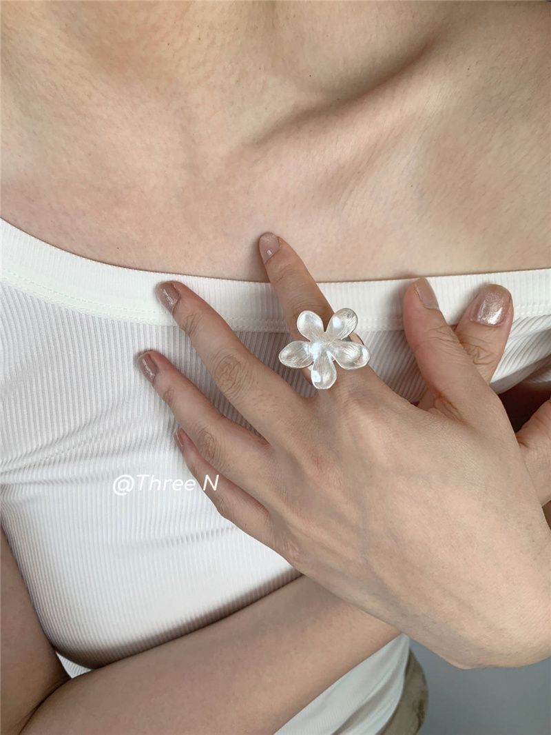 欧米の国境を越えた宝飾品はフランスの丸いしわの金属指輪を誇張して、不規則な小さな花の指輪をシンプルにしている