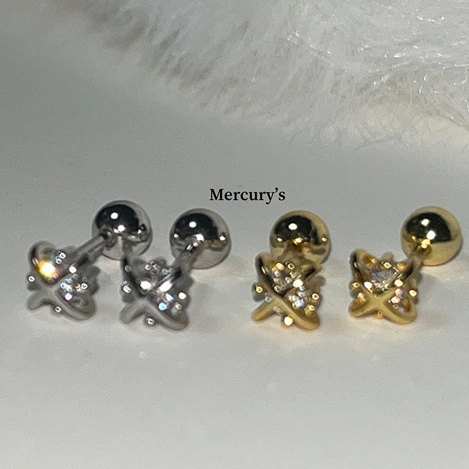 Mercurys宇宙惑星耳釘養耳穴フラッシュドリル耳骨釘金色銀色ねじ耳飾り