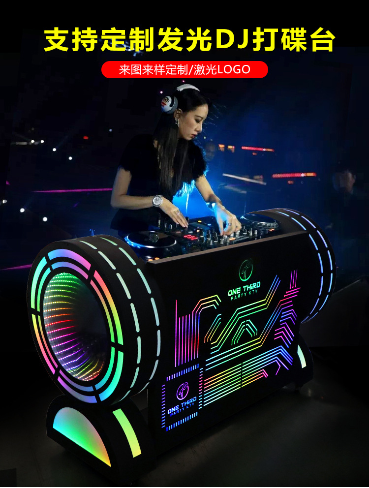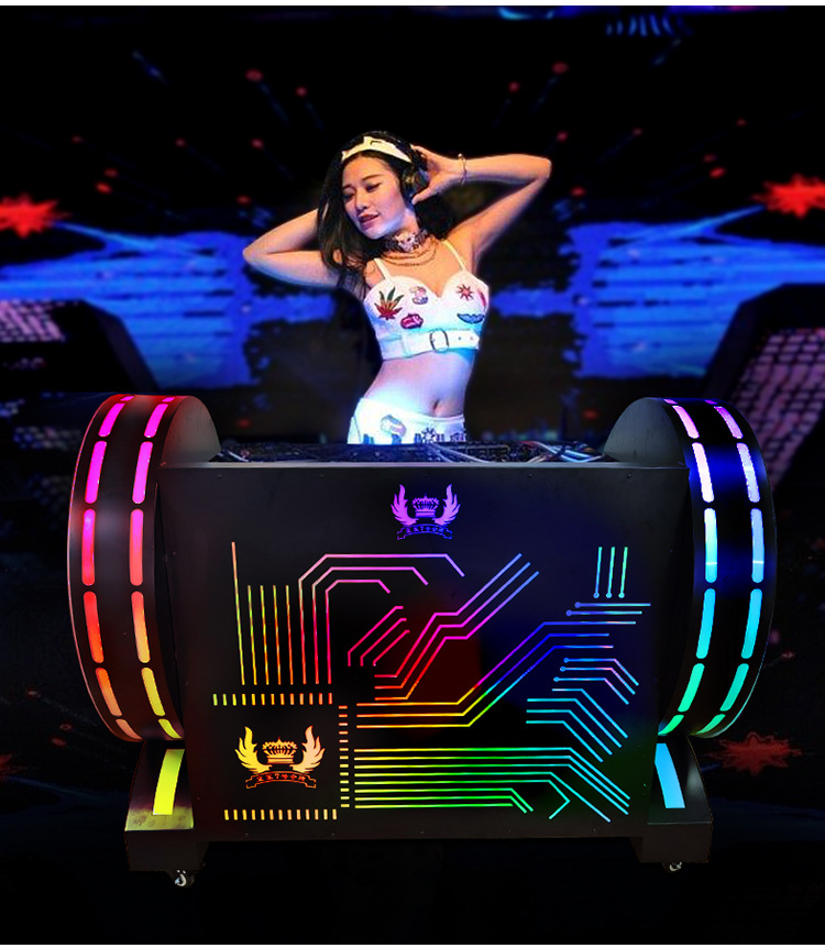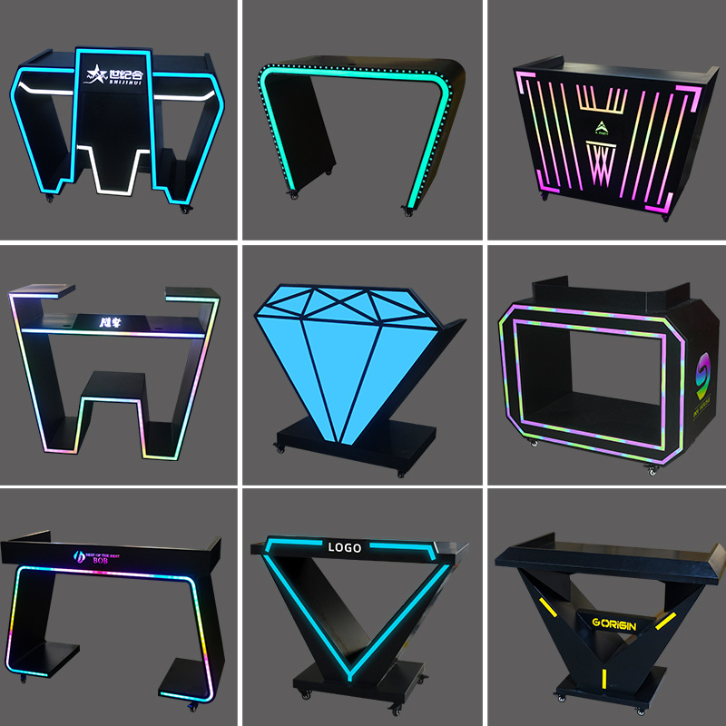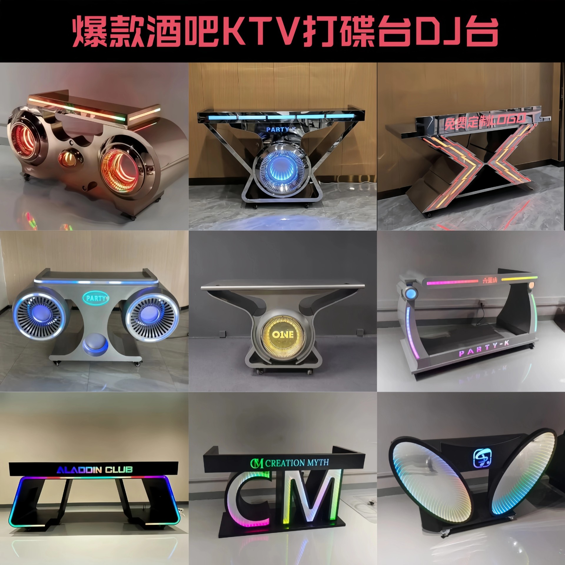 バー発光DJデスクKTV個室DJテーブルナイトクラブミキサーLED鉄製移動式バーカウンターロゴレジカウンター