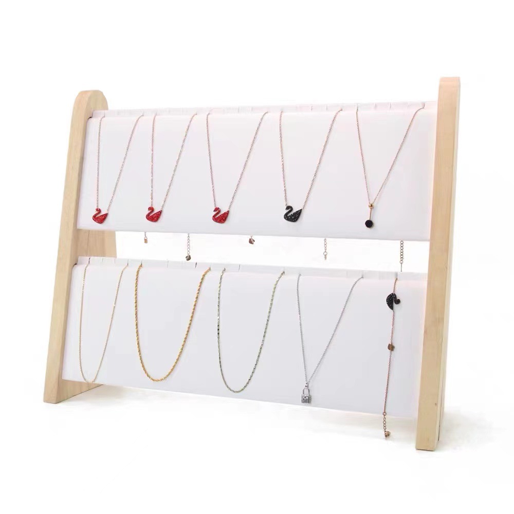 胡桃色斜面ネックレス展示棚二段大容量ペンダントイヤリング収納整理棚ジュエリーアクセサリー棚