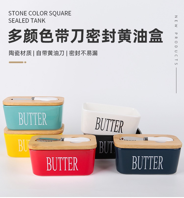 長方形陶磁器牛油箱クロスボーダー代発レストラン密封貯蔵箱西洋風チーズ箱ナイフ付きバター箱