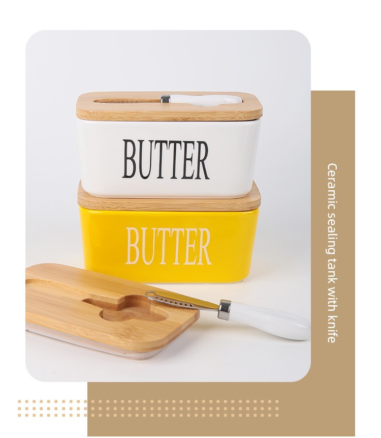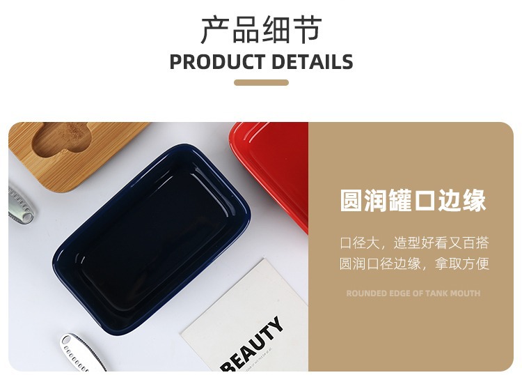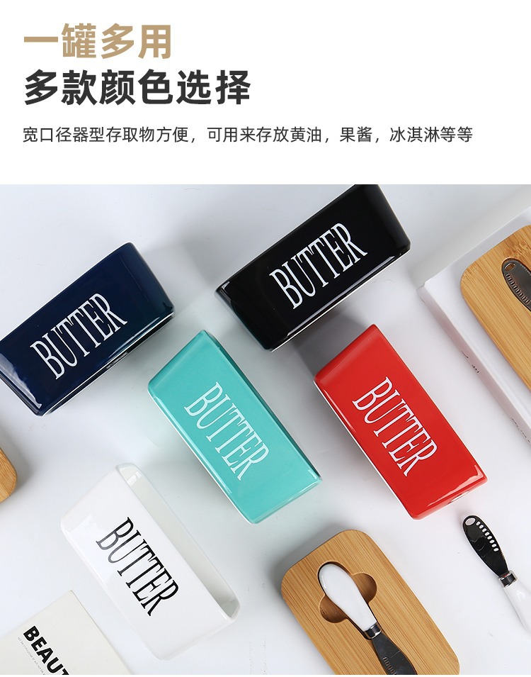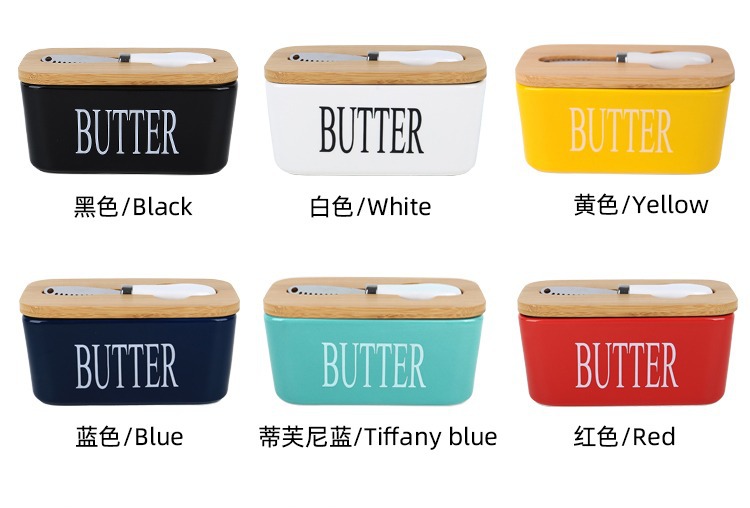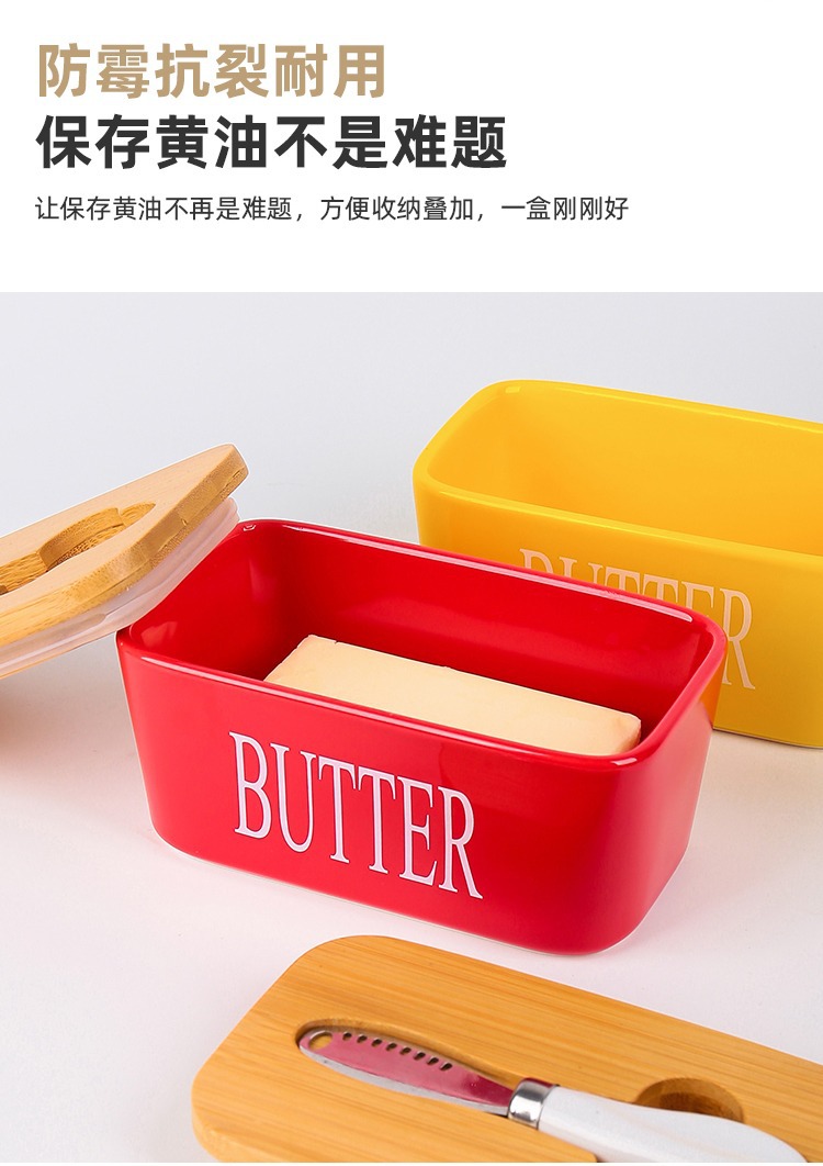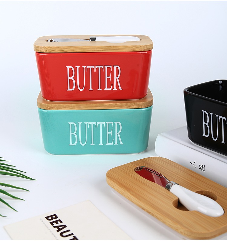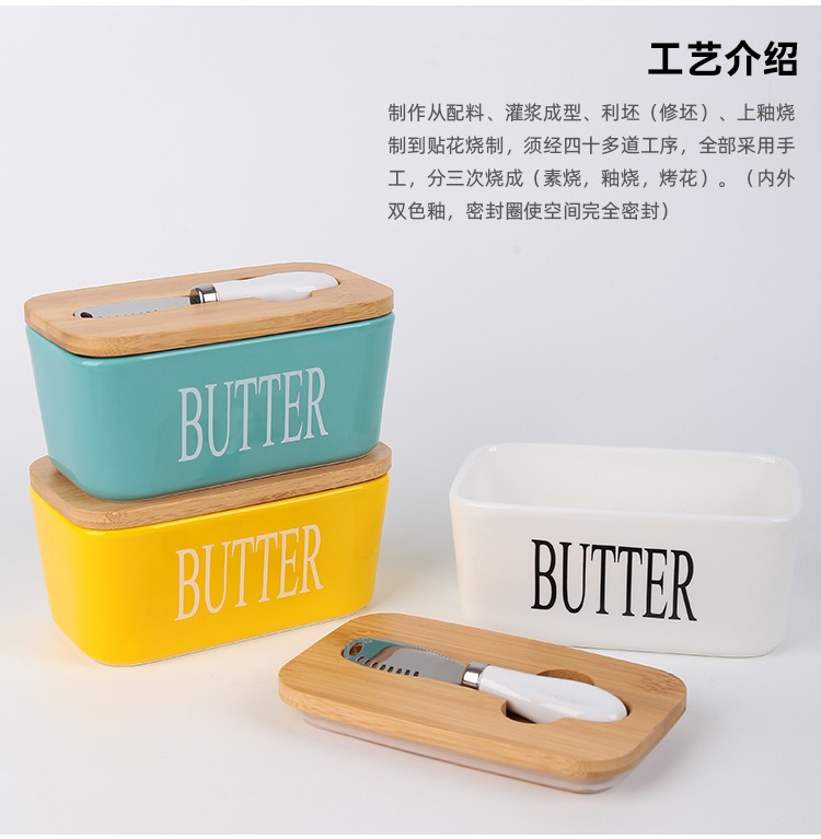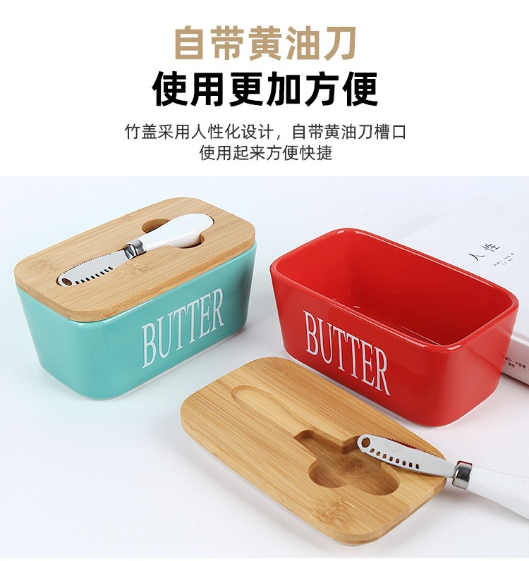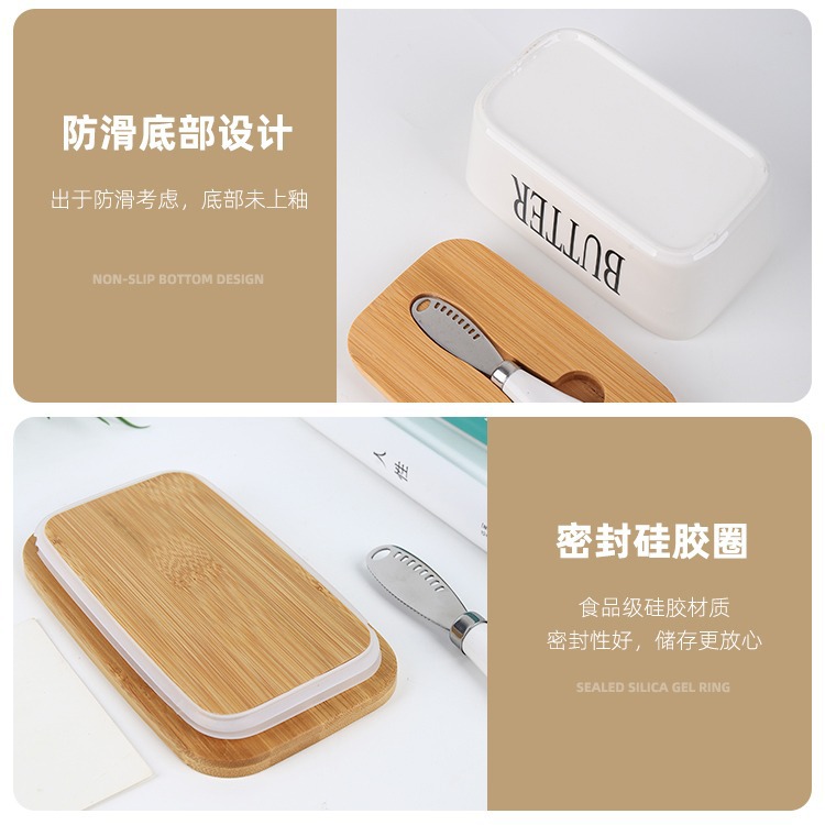 セラミック長方形バターボックスバターボックスクロスボーダー代理店西洋竹蓋マッチングスパチュラ密封保管卸売