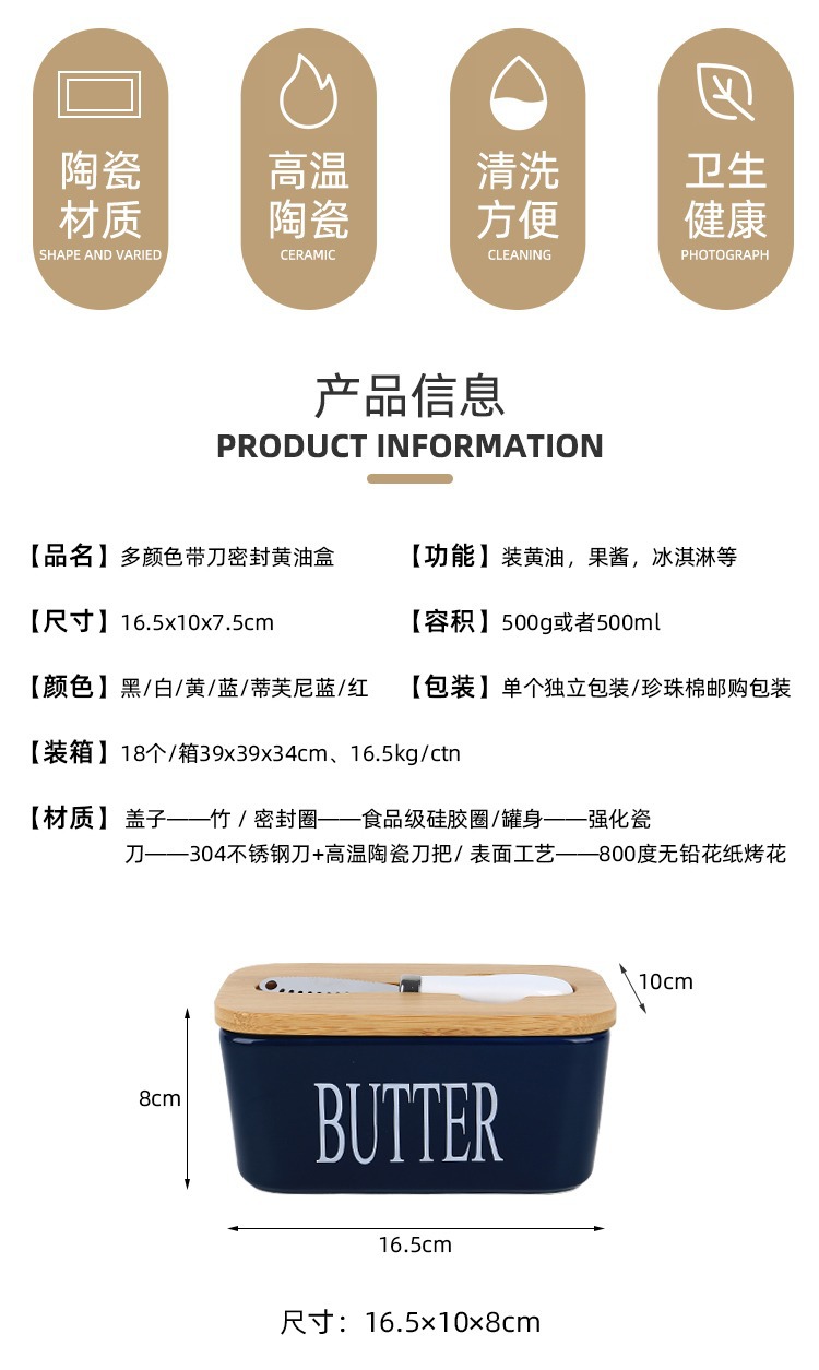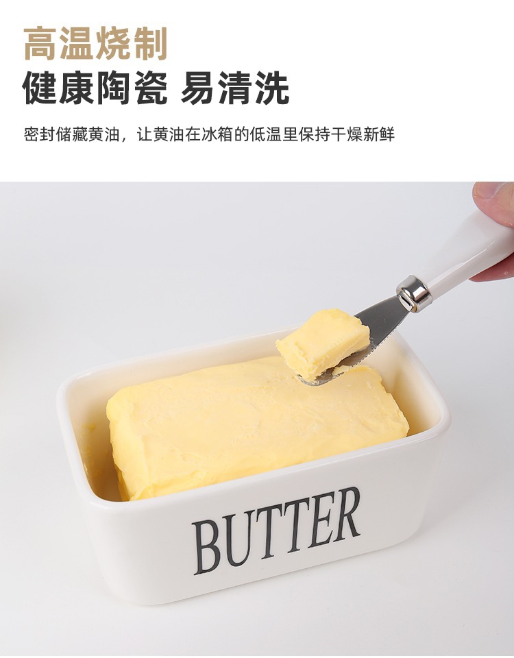 可视化黄油盒冷藏盒带刀陶瓷长方形黄油碟带木盖奶酪陶瓷牛油盒
