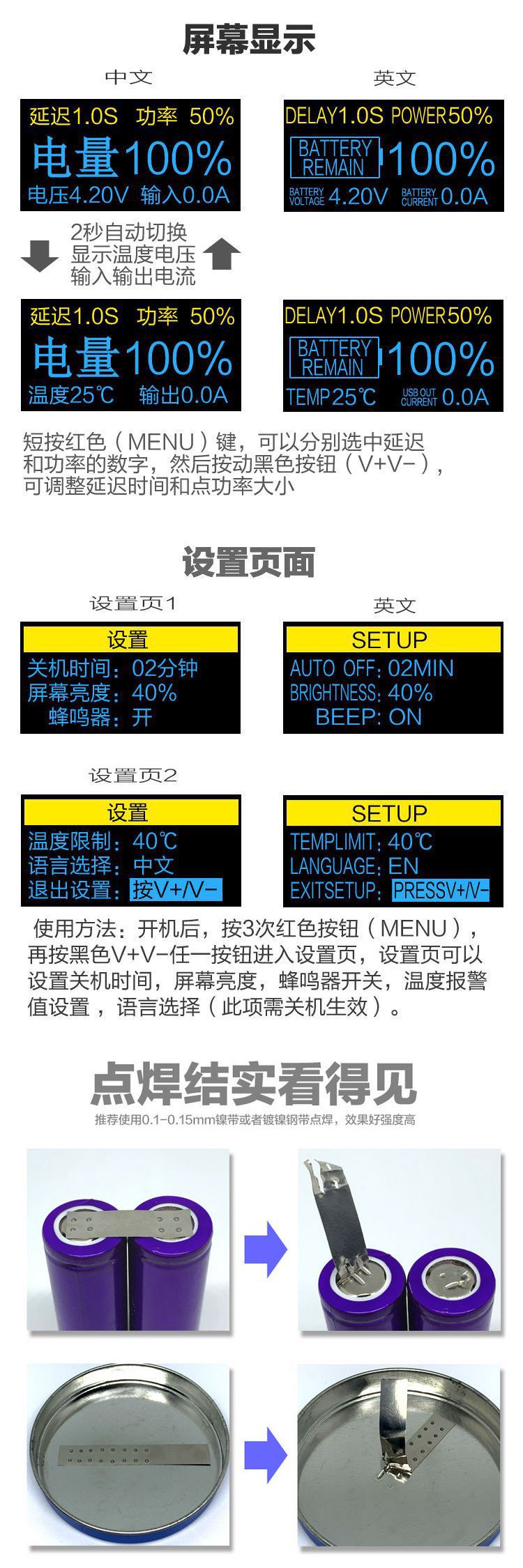 中国語カラースクリーン携帯型スポット溶接機ミニ秀珍ミニ18650溶接機修理携帯電話内蔵リチウム電池