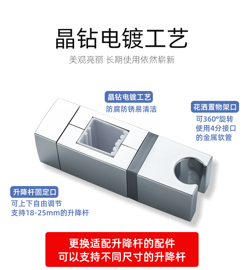 厦门淋浴花洒支架升降杆19-28mm免拆花洒支架滑套淋浴升降杆中插
