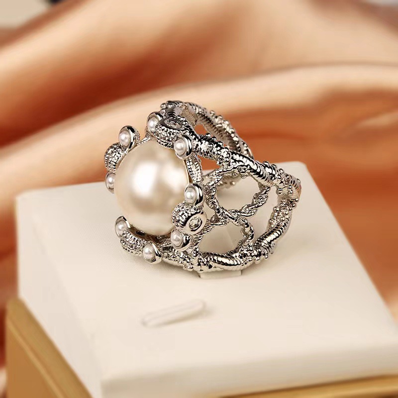 韓国東大門復古バロック真珠指輪女性宮廷風insネット赤生放送デザイン開口指輪