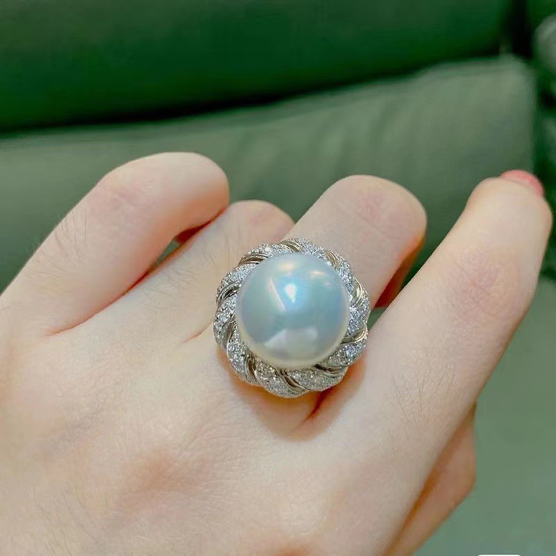 人工貝母真珠の指輪を身に着けている豪華な食指の指輪は、高炭素ドリルの女性の指輪を誇張している
