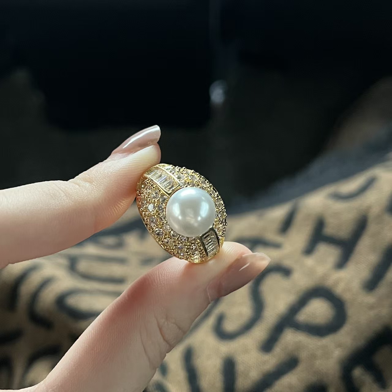 中古vintage复古时尚大气珍珠戒指个性宫廷风女戒轻奢高级感手饰