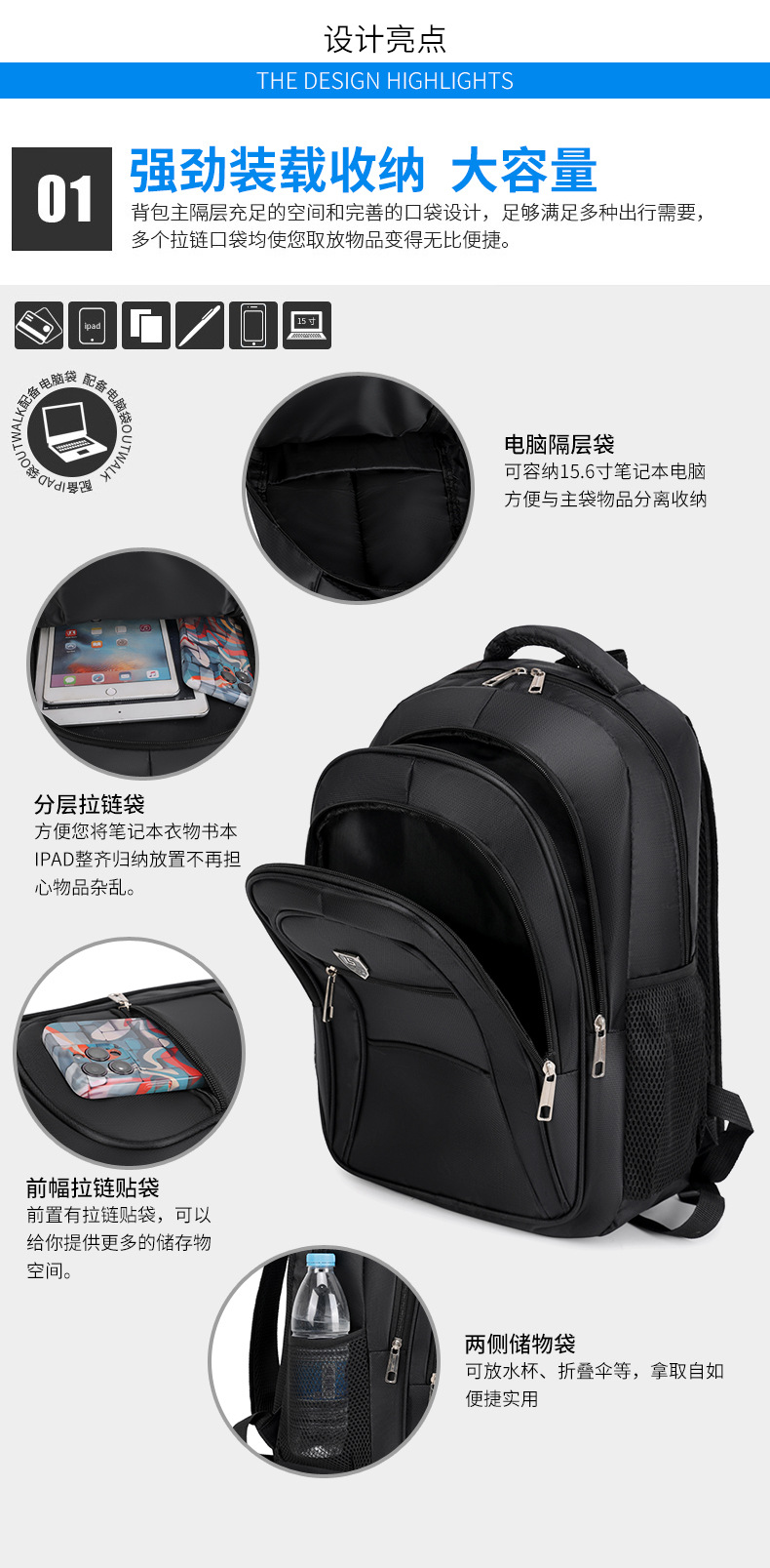 新型バッグ大容量リュックサックパソコンリュックサック中学生カバン男軽ビジネス通勤リュックサック