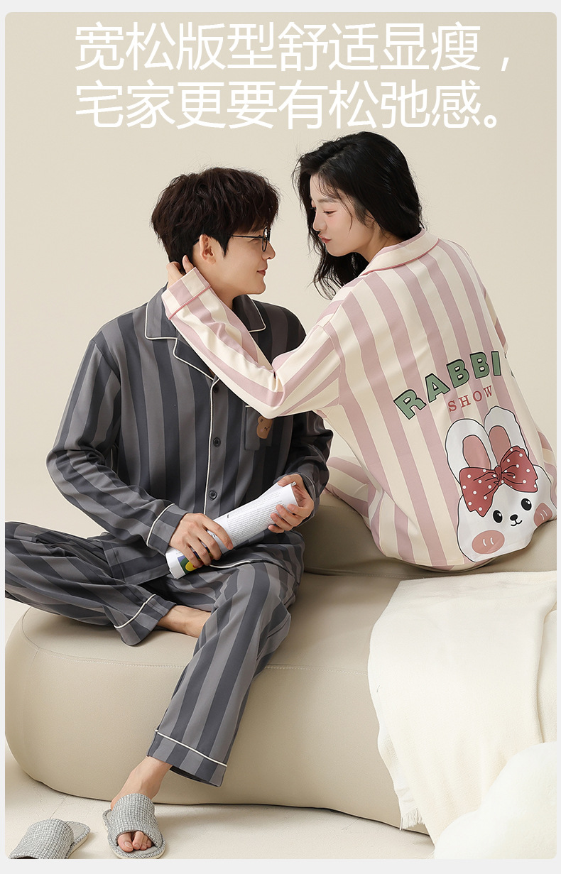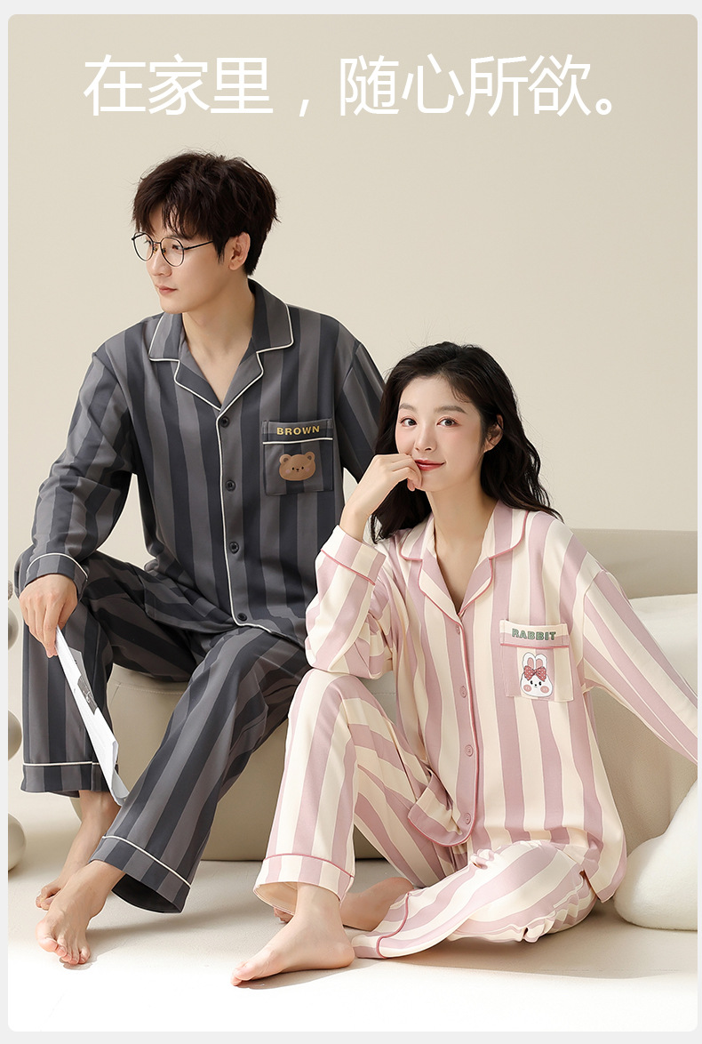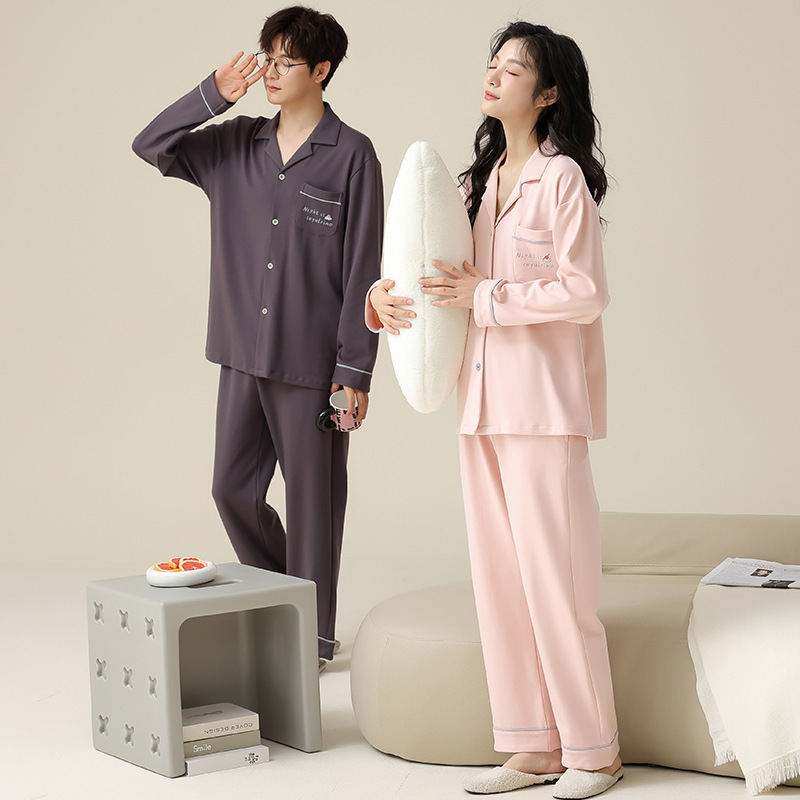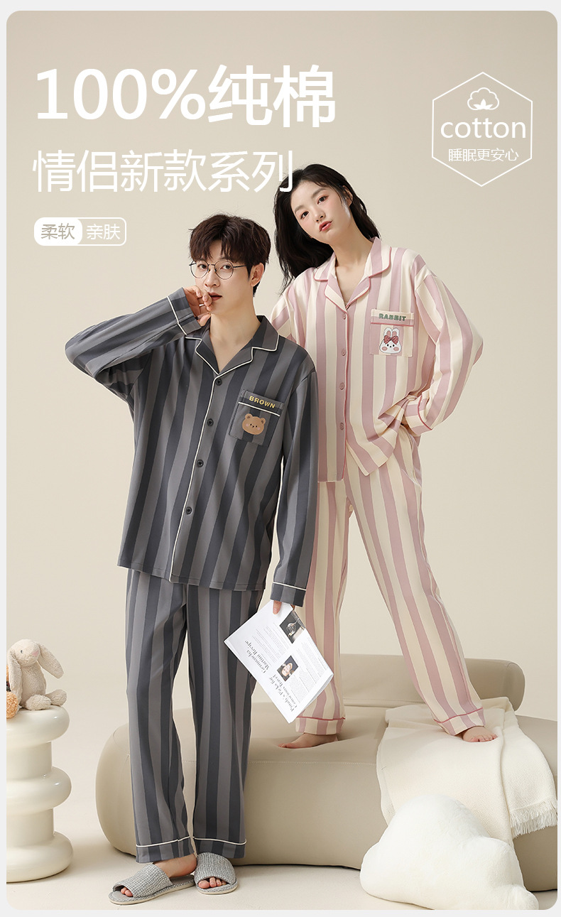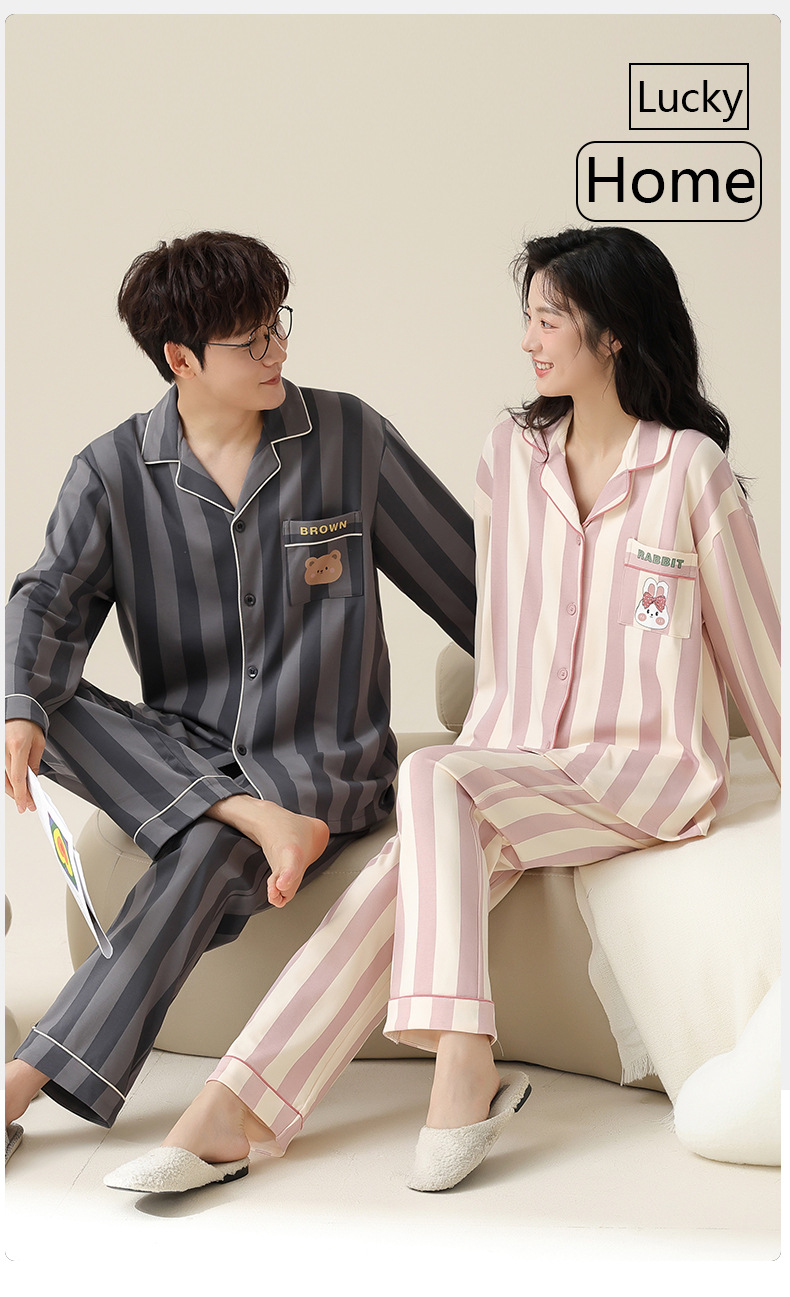 【純綿】カップルパジャマ 春秋冬 長袖 男女兼用 甘い綿カジュアルスタイル ホームウェアセット