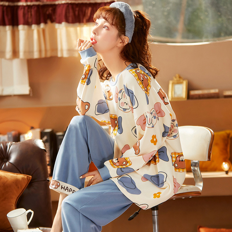【純綿】パジャマレディース春秋長袖長ズボンファッション家庭服甘いセット秋冬新作丸襟