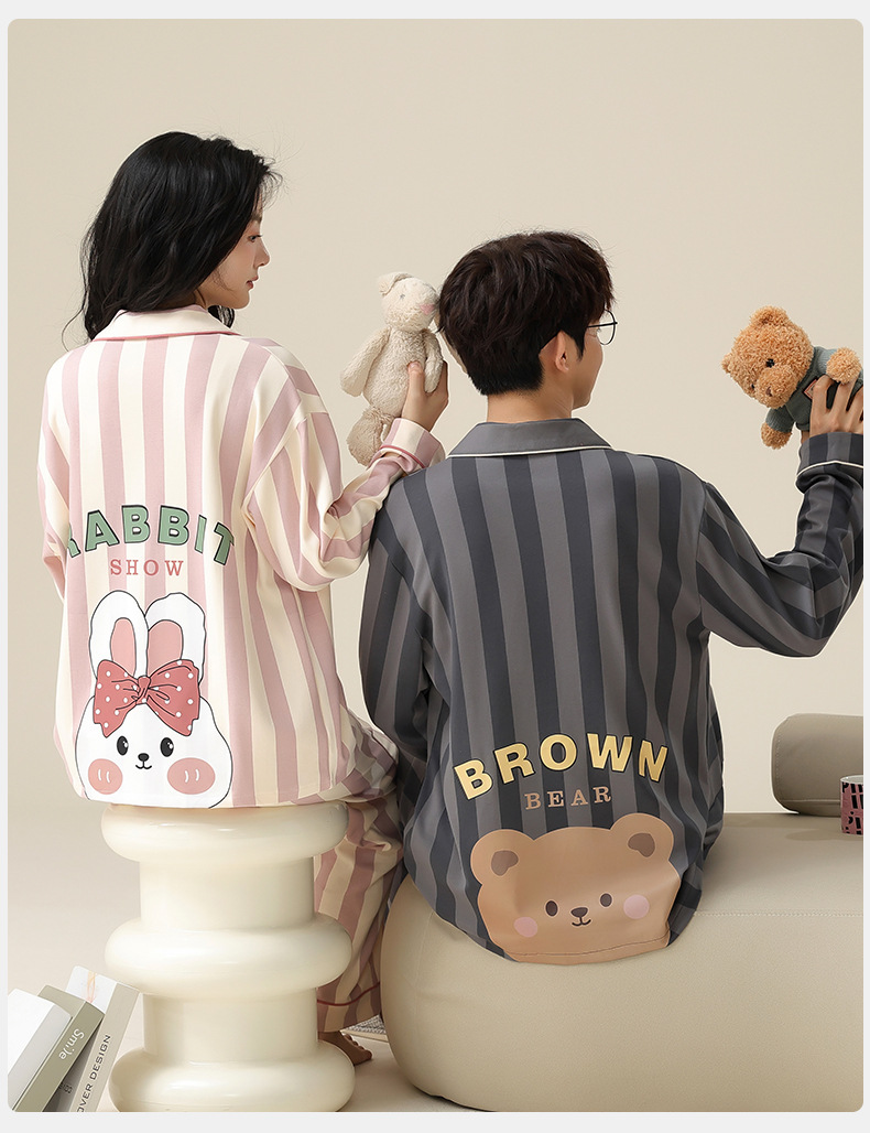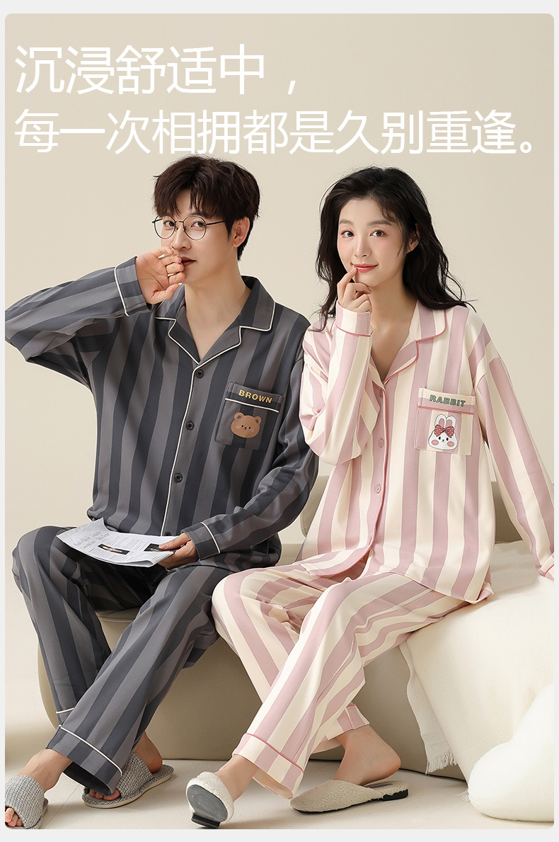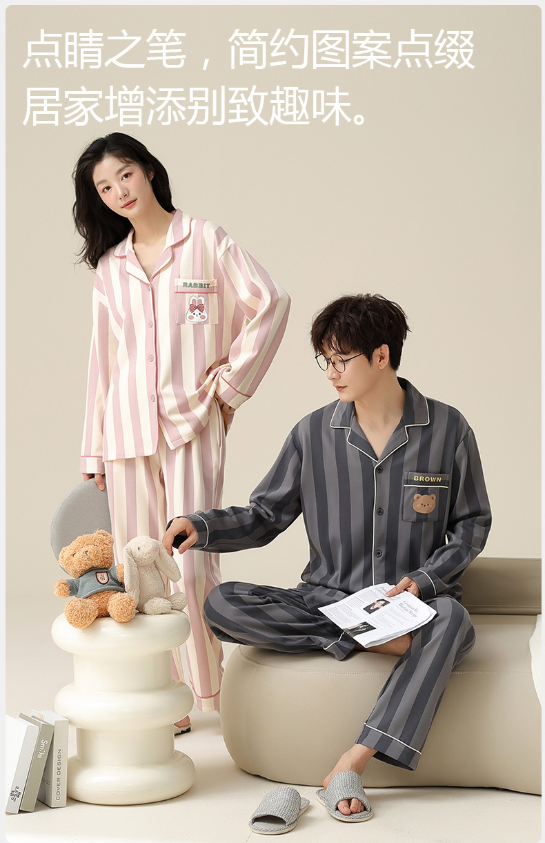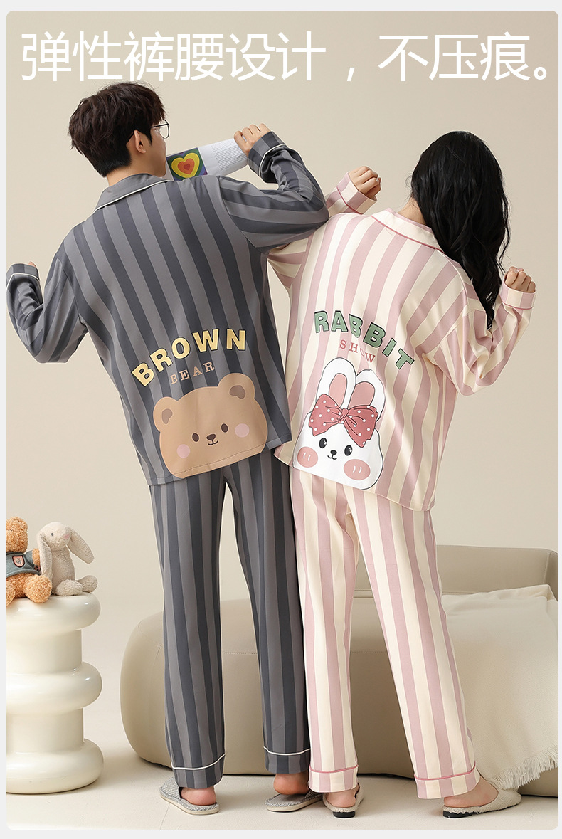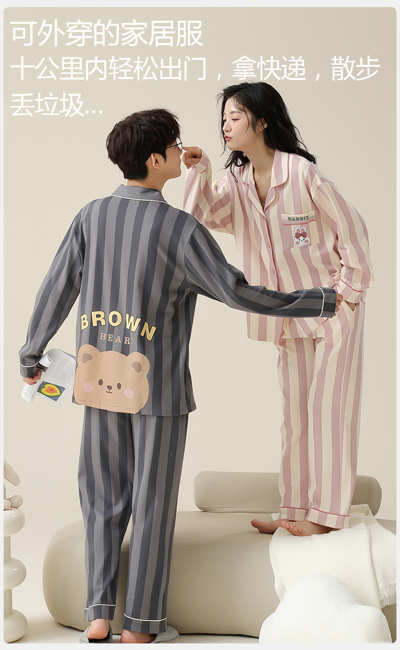 100%情侣睡衣女带胸垫秋季新款长袖长裤可爱卡通男士可外穿家居服