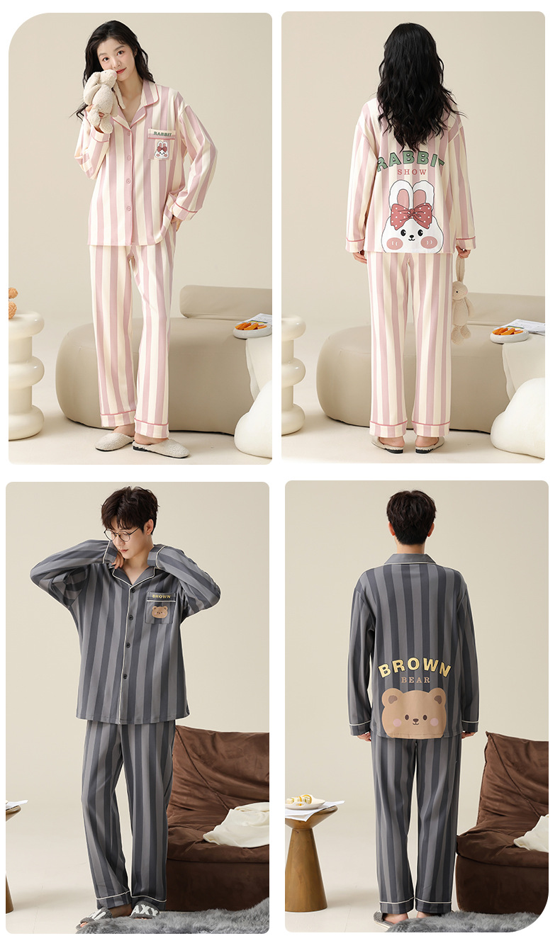 【純綿】胸パッド付きパジャマ カップル用 春秋冬 漫画柄 長袖 男女兼用 ホームウェア 2点セット