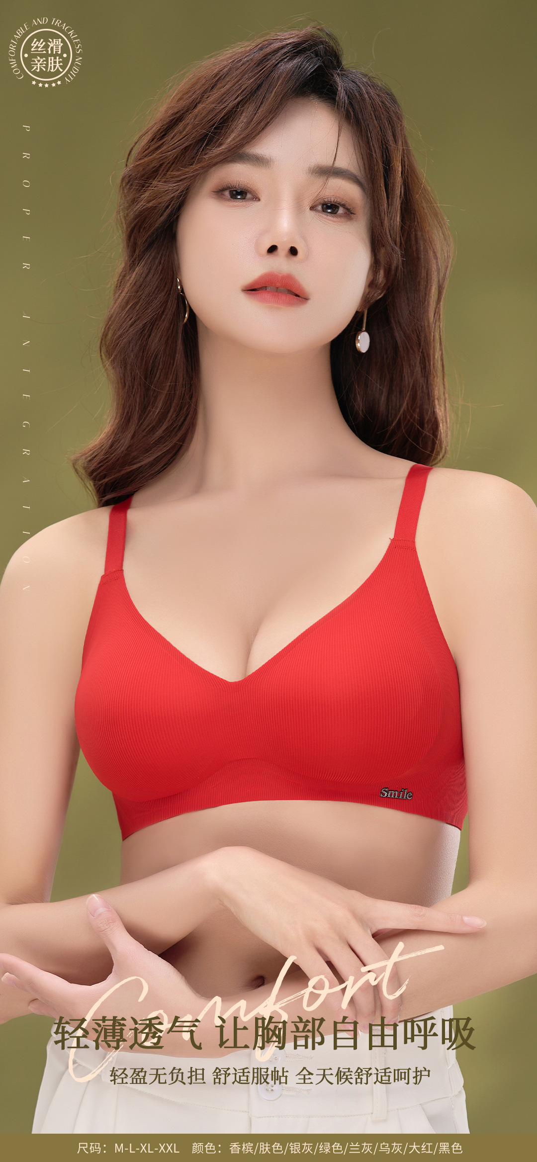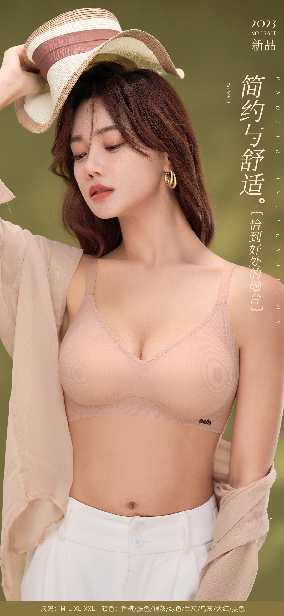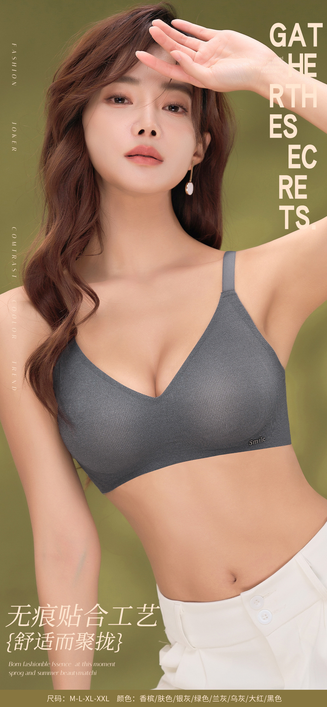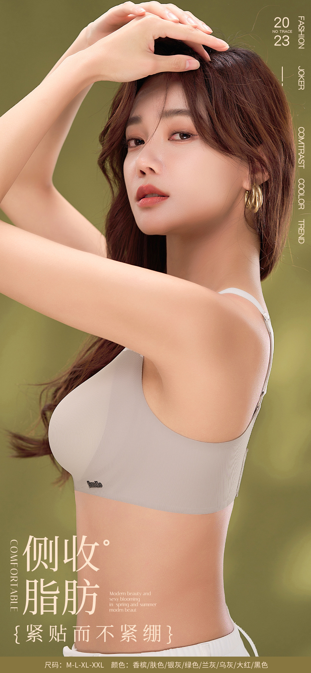 B78固定カップ快適シームレスブラ、小胸を寄せ上げ、脇の肉を隠し、垂れ防止、ゼリーバンド、ノンワイヤーブラ