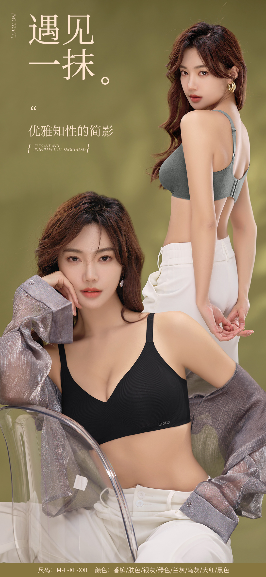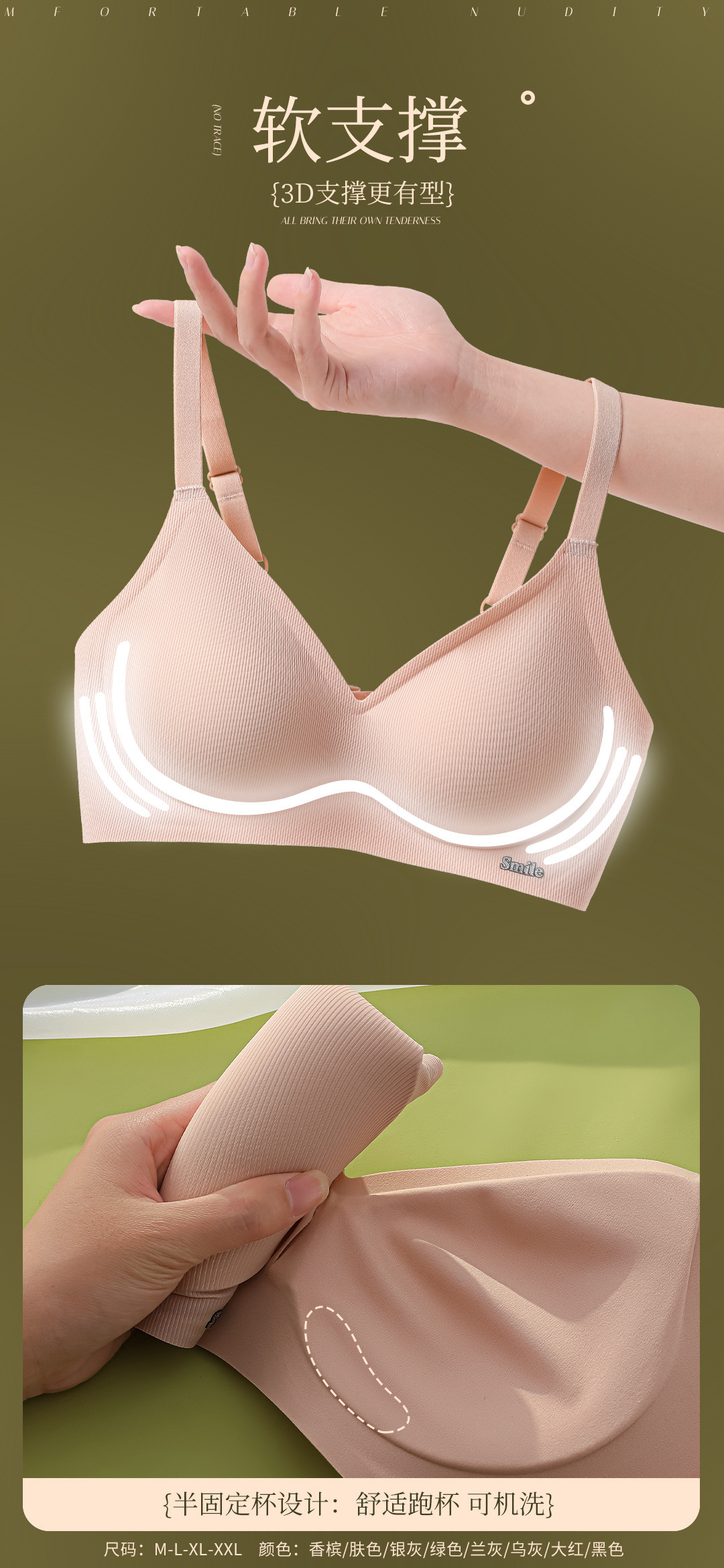 B78无痕裸感下着レディースゼリーソフトサポートリベット调整タイプスチールリングなし超薄型ブラジャー