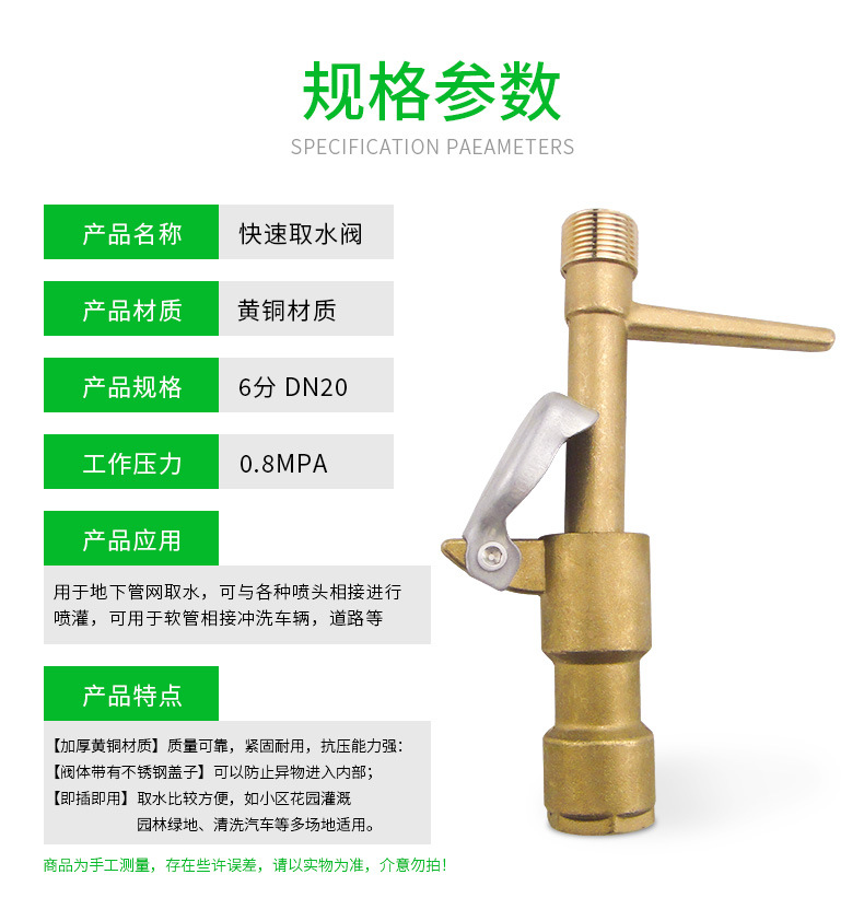 6分DN20/1寸DN25园林快速取水阀绿化地插头钥匙杆黄铜全铜取水阀