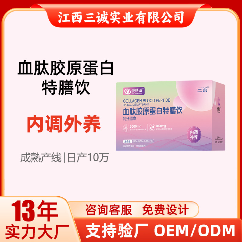 三诚血肽胶原蛋白肽饮女性口服液鱼胶原肽养颜饮品工厂现货速发盒