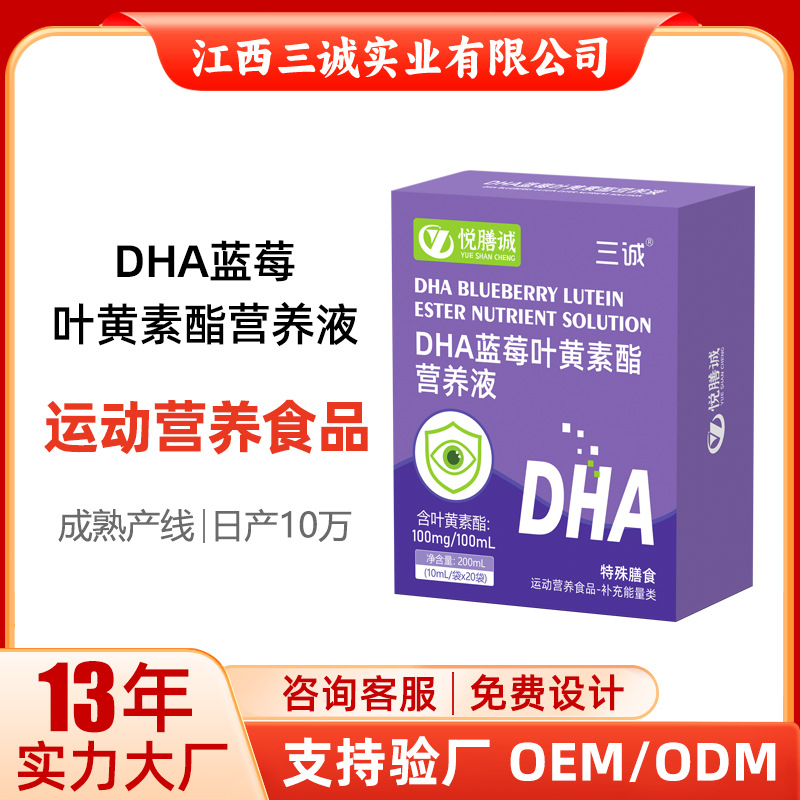 江西三誠DHAブルーベリールテインエステル飲料液、学生・大人向けの目の健康とエネルギー補給のためのドリンク、すぐに飲める