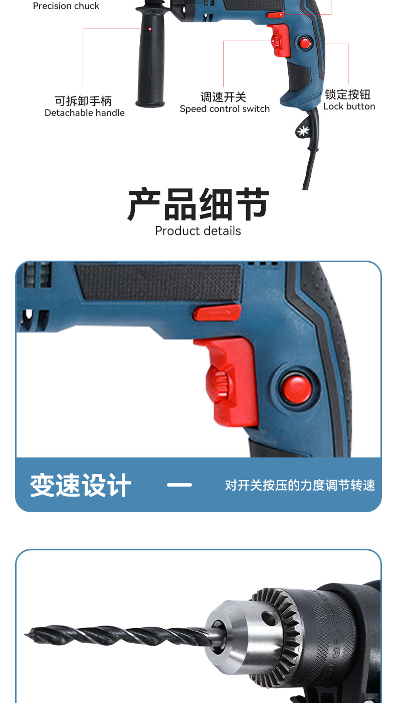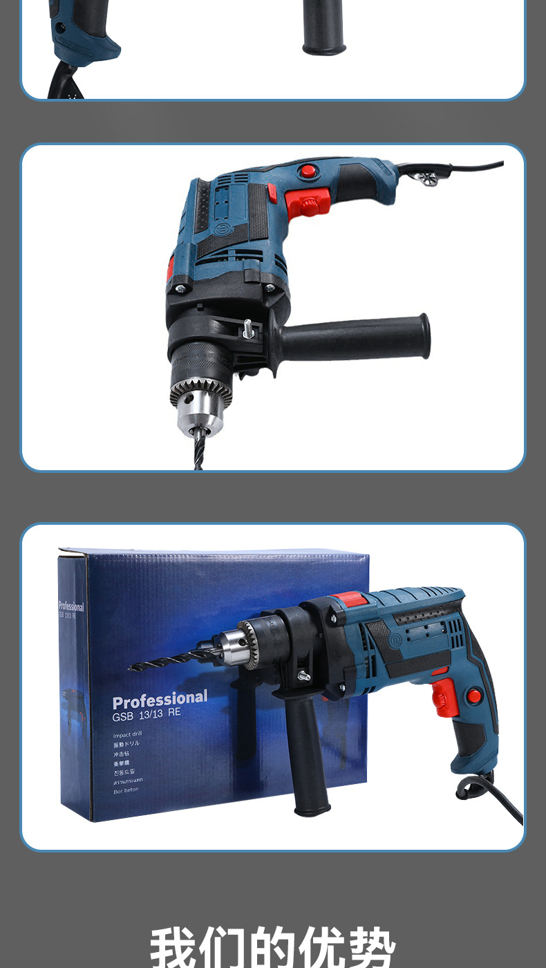 メーカーは家庭用13インパクトドリルの大出力多機能速度調整可能な手動ドリルの電動工具セットを供給しています。