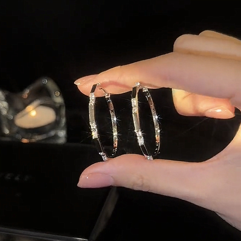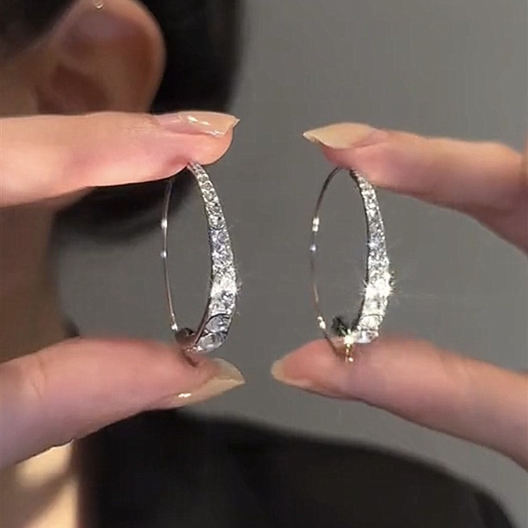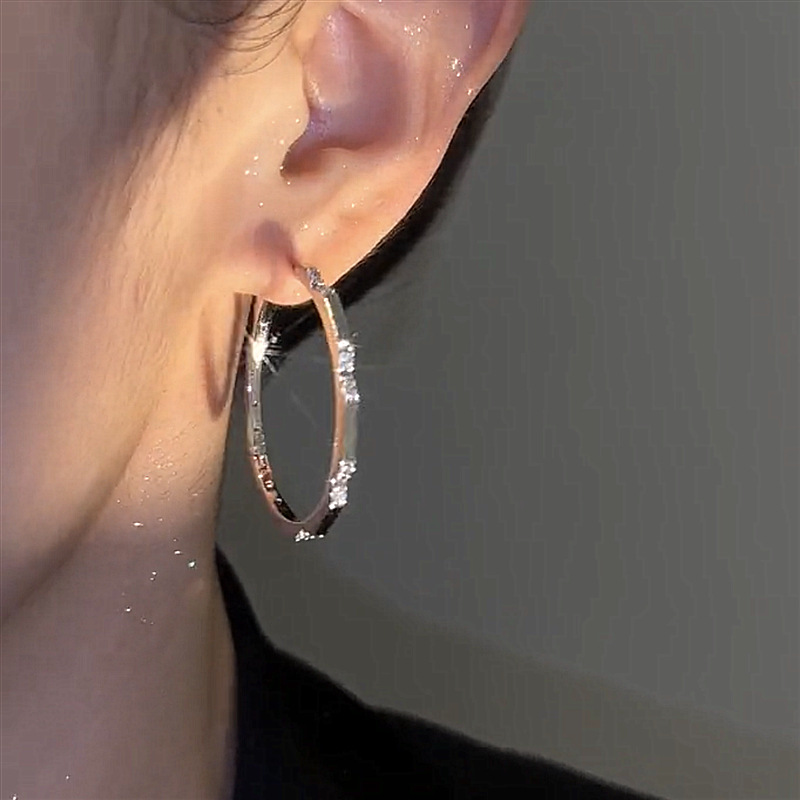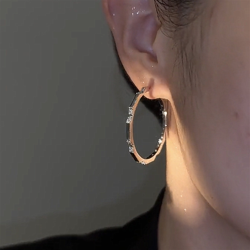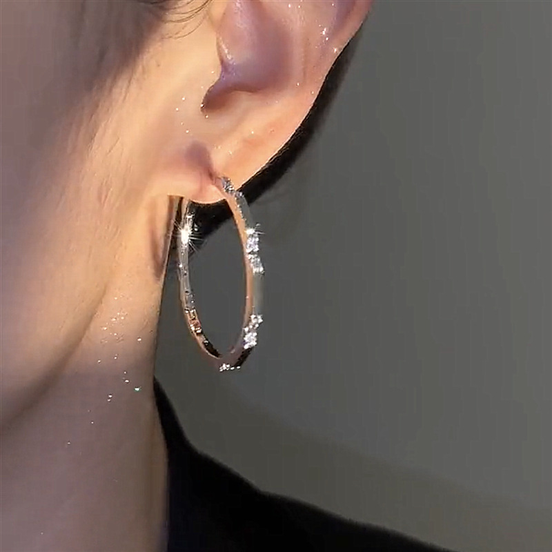 ダイヤモンドの円のイヤリングを入れて、女性の耳のフックの金はダイヤモンドの気質の銀色の大衆のデザイン感の耳の輪の高級感の気質の耳飾りをつけます。