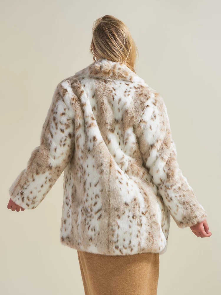 アマゾンの爆発的な毛皮のコートは国境を越えて長いメンズの山猫のヒョウの紋様の環境保護の毛皮はキツネの毛皮のコートをまねます。