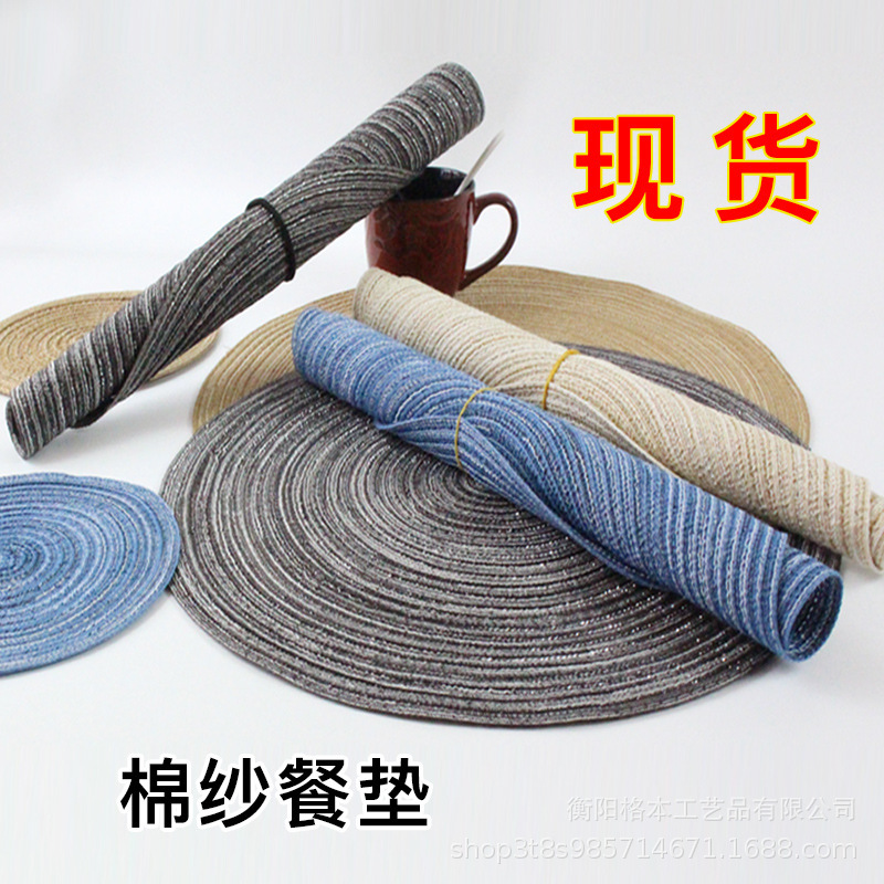 クロスボーダー無地断熱マット、丸型、ヨーロピアンスタイル、手織り、色落ちしにくい、テーブルプレースマット、鍋、食器、耐熱マット