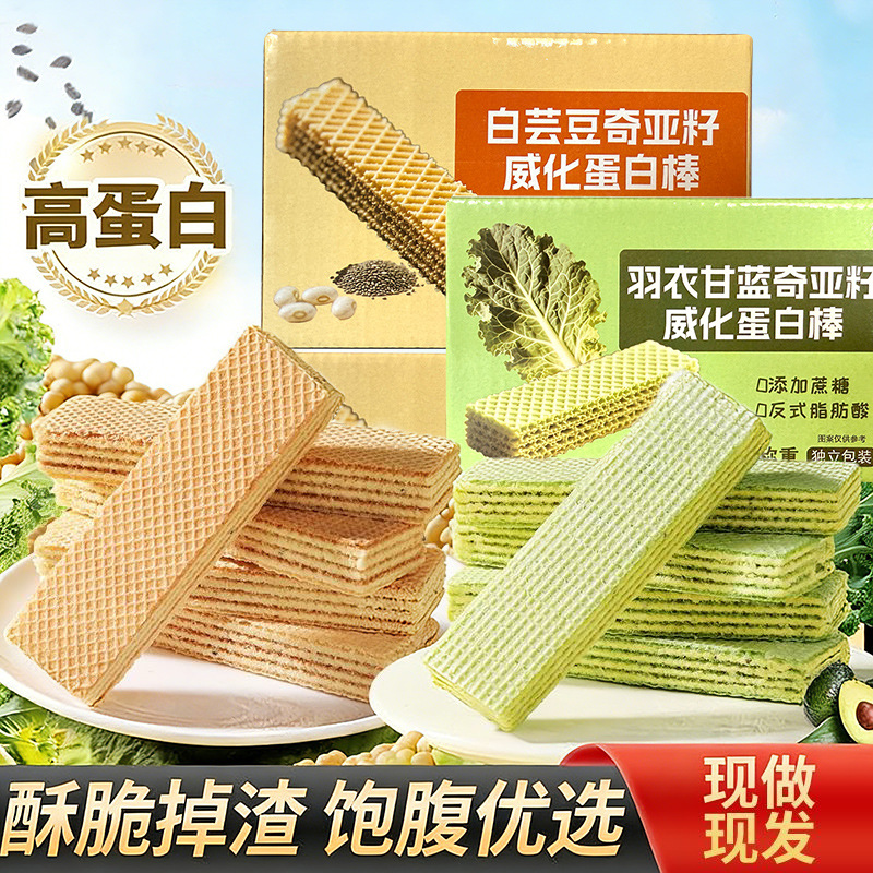 羽衣甘蓝奇亚籽威化白芸豆威化蛋白棒可可乳清威化饱腹代餐零食