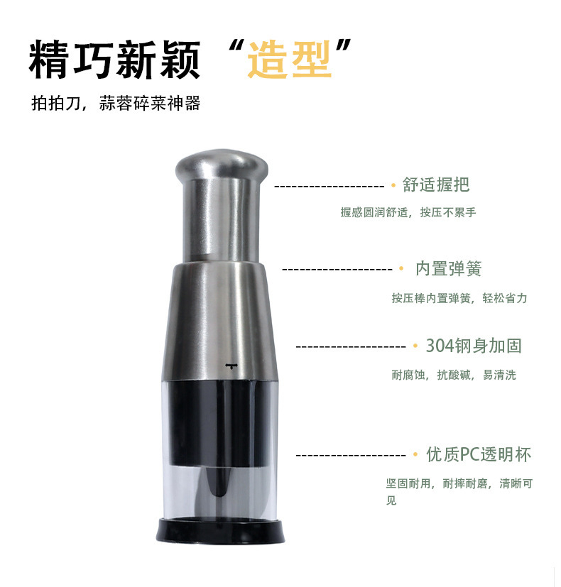 304 ステンレス鋼パットナイフニンニクアーティファクト手動みじん切りニンニクみじん切りニンニクみじん切りネギ生姜ニンニクキッチン用品工場直販
