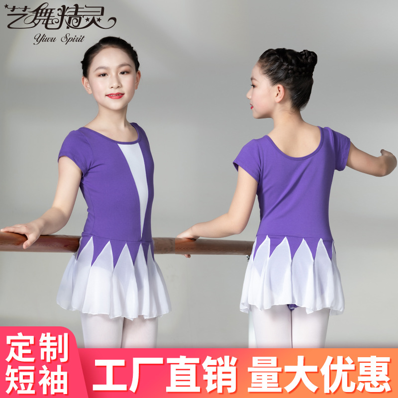 芸舞の精霊の新型の2021子供のダンスの服の半袖の開段のワンピースの民族のバレエの形のダンスの服