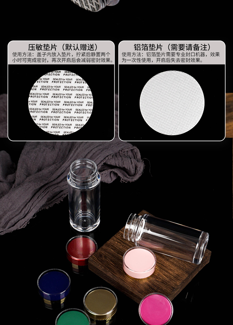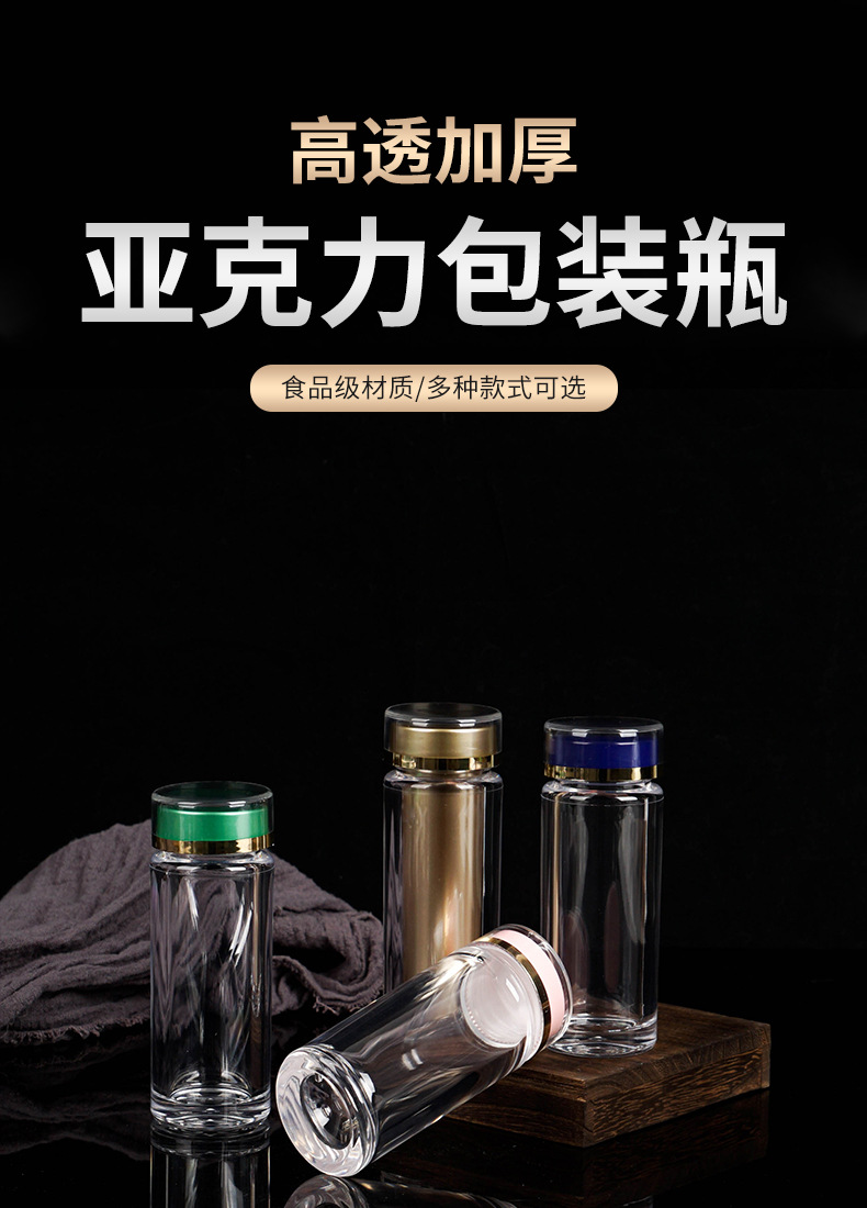アクリル食品級内胆避光防湿分装プラスチックボトルシール缶高級透明健康食品薬瓶
