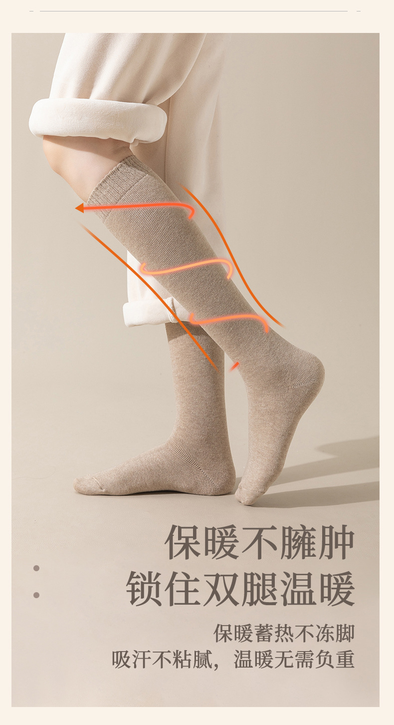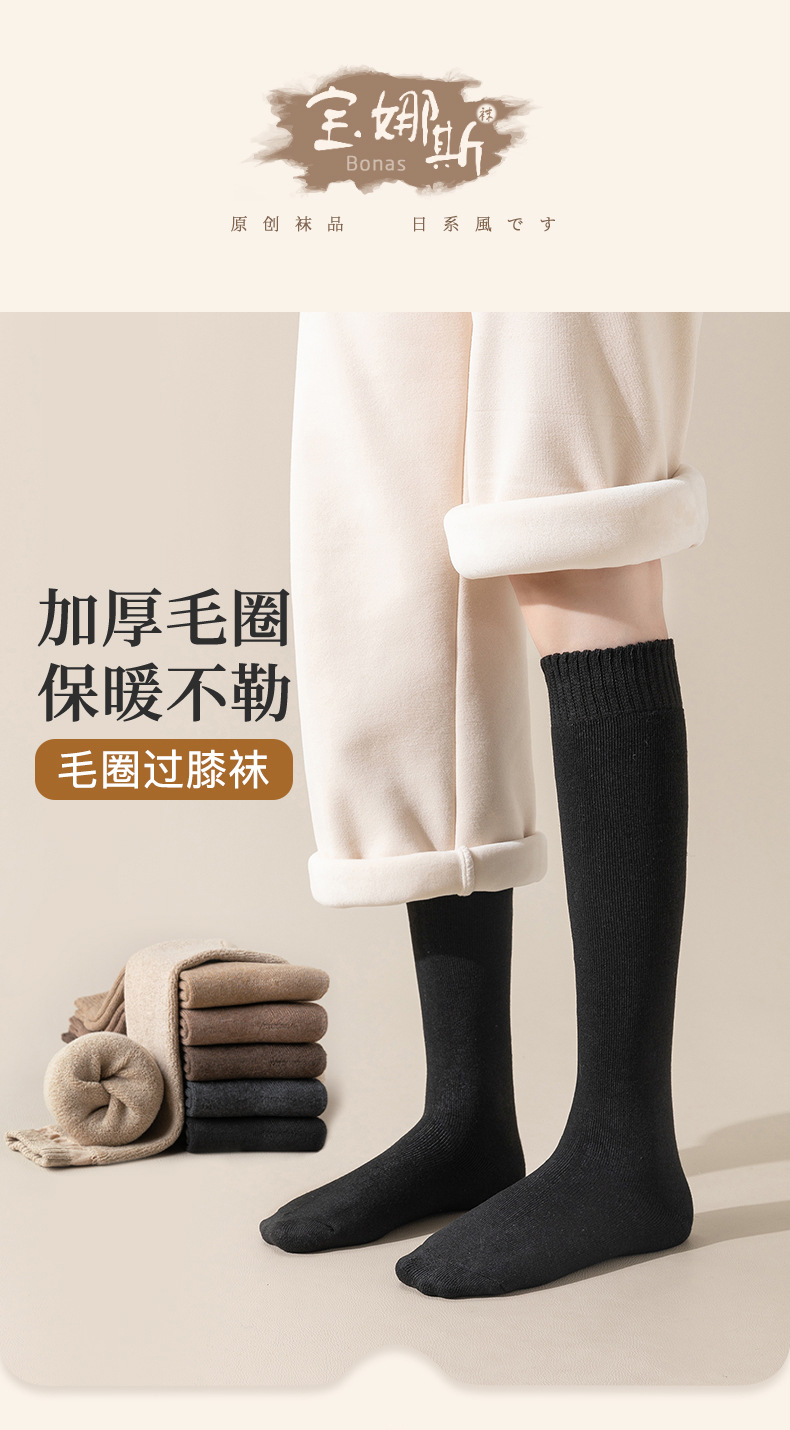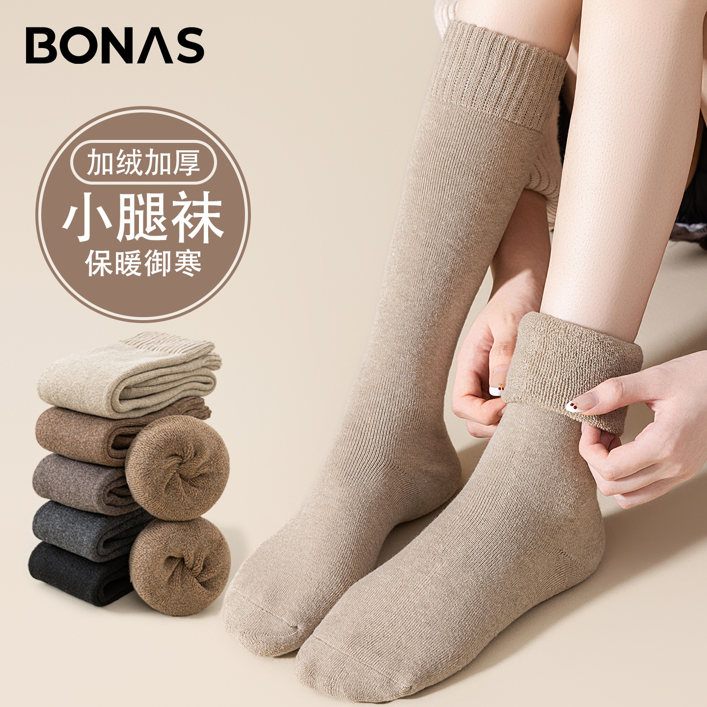 宝娜斯小腿袜女秋冬季保暖毛圈半截中筒袜加绒加厚防下滑过膝袜