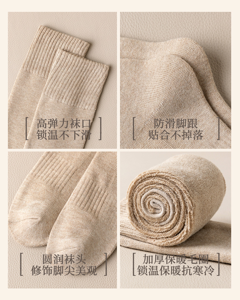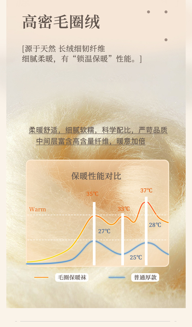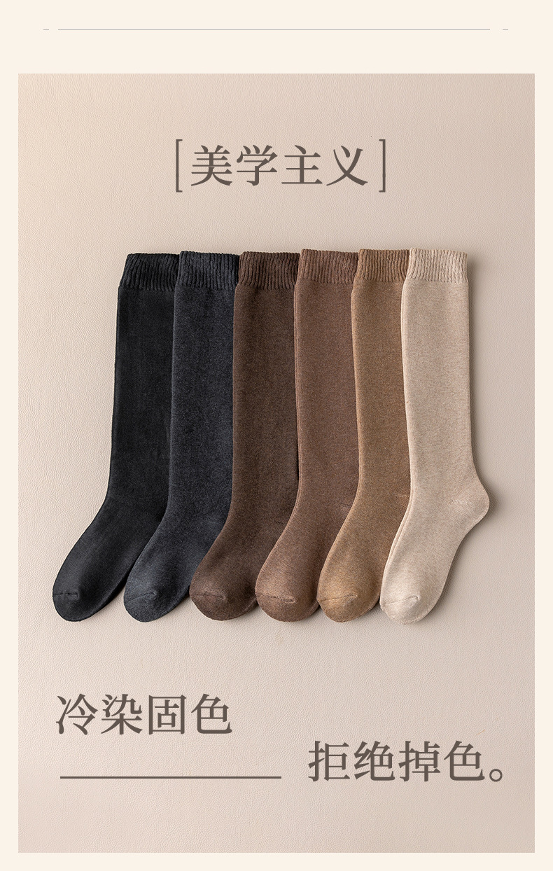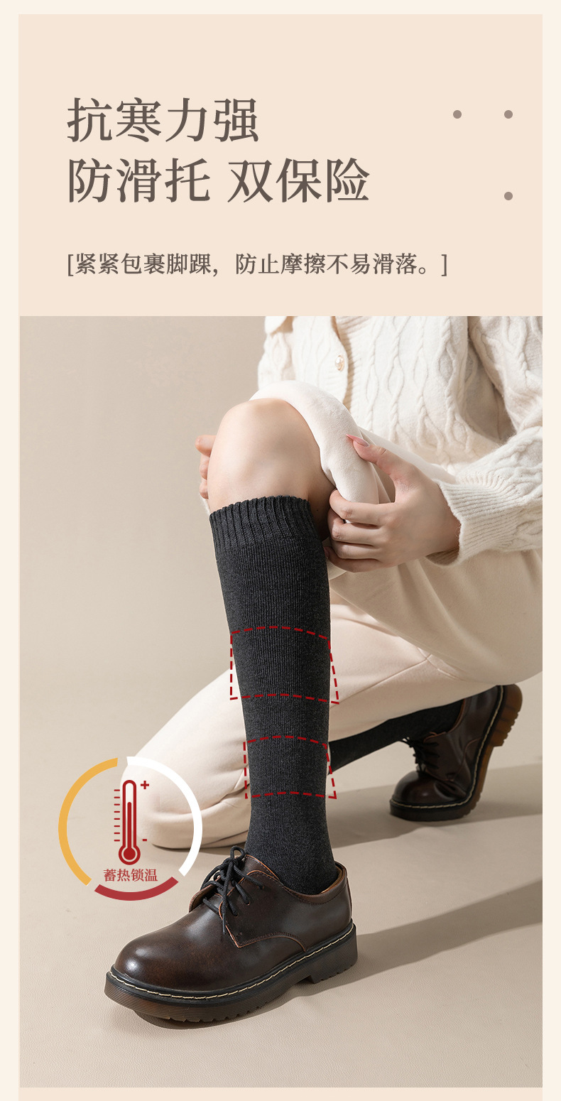 宝娜斯小腿袜女秋冬季保暖毛圈半截中筒袜加绒加厚防下滑过膝袜
