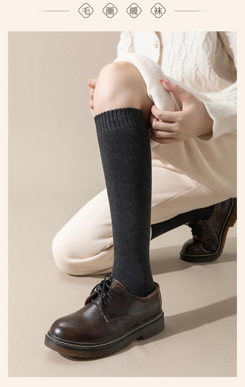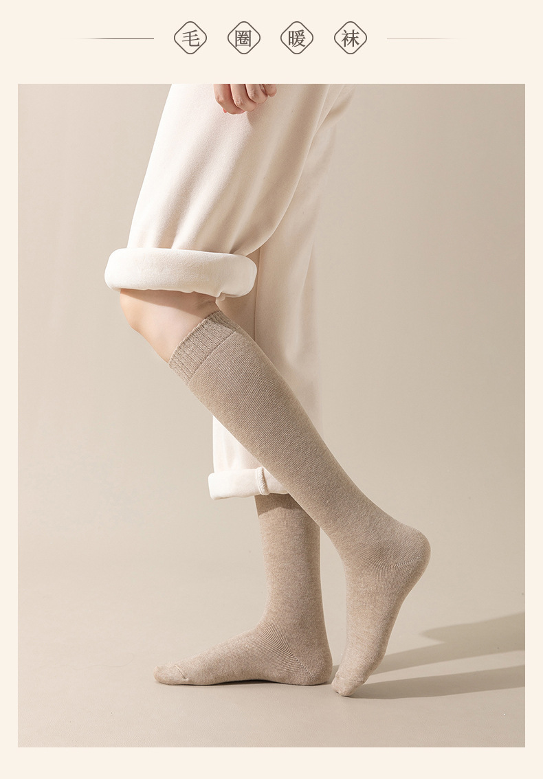 宝娜斯の靴下の女性の高い筒の毛の輪の靴下の秋冬のベルベットの厚い保温のタオルの足の靴下の冬のストッキング