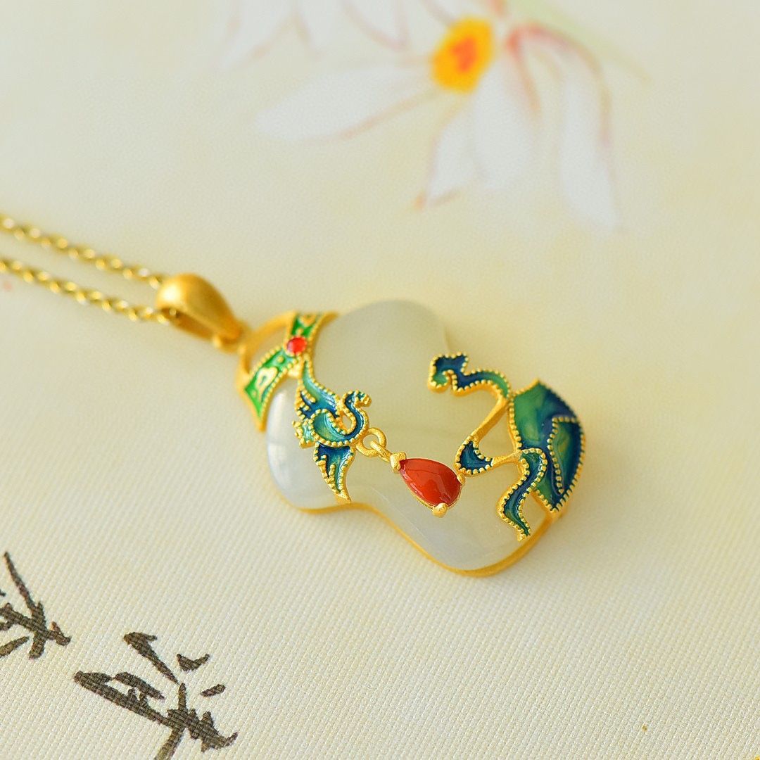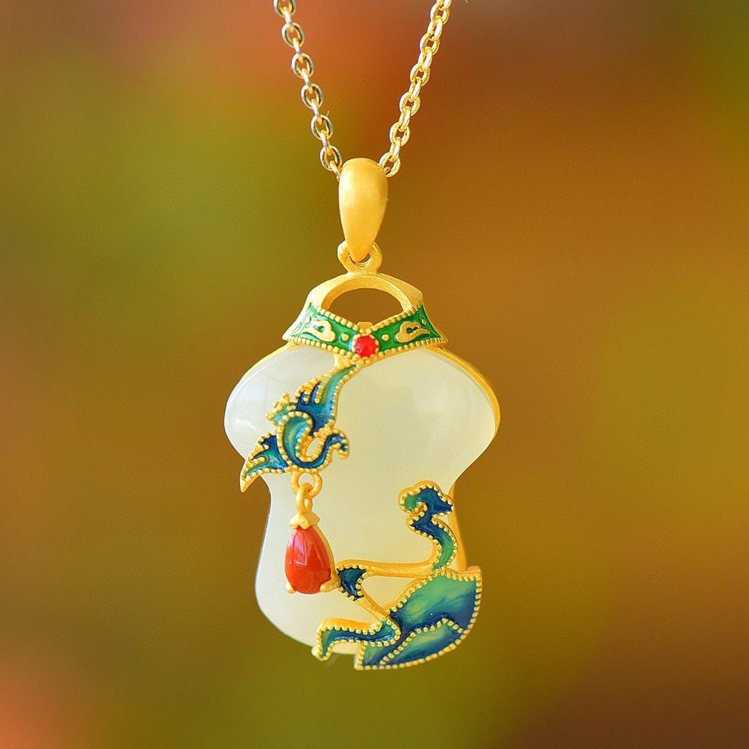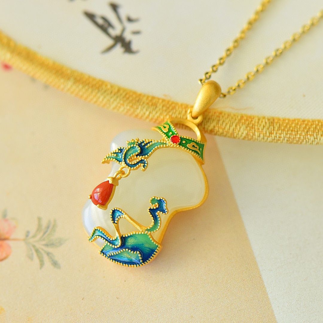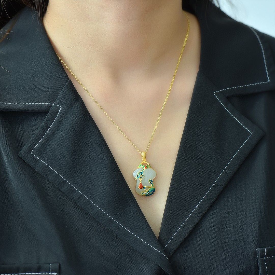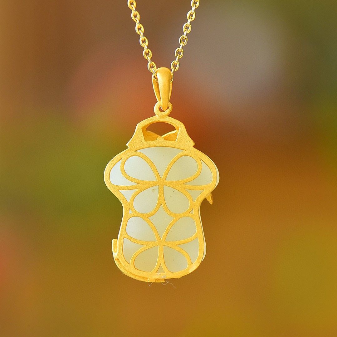 幸運天然白和田玉器18k金メッキ925純銀笑弥勒仏ネックレスジュエリー