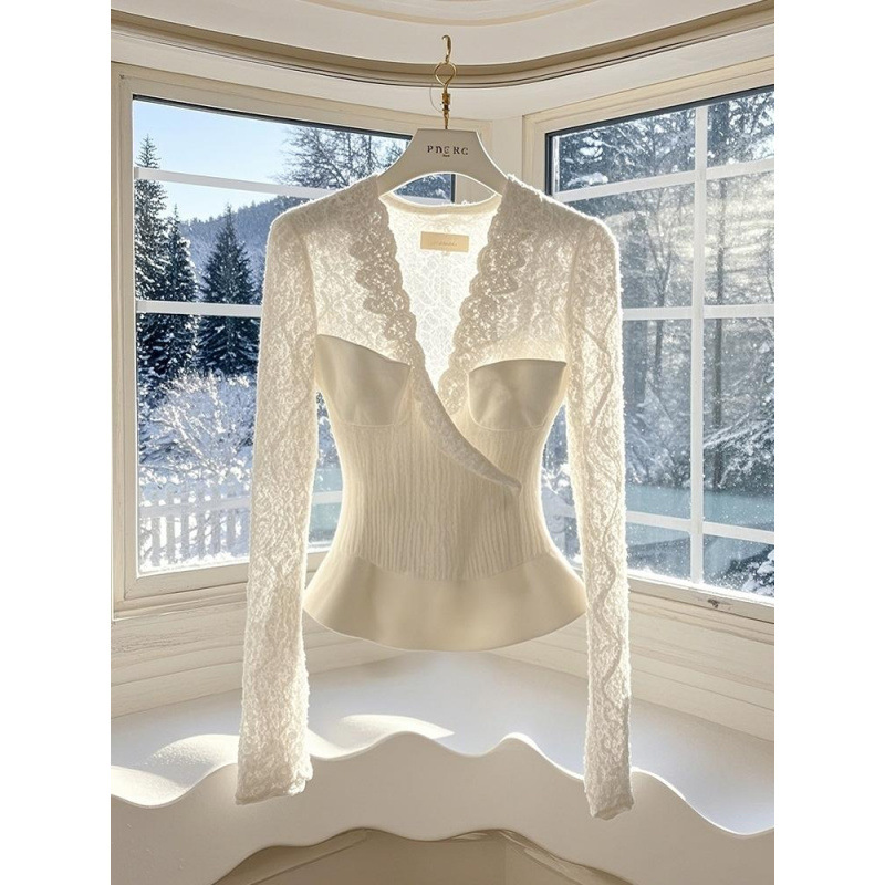 フランスの高級感の白い毛のレースの中で底のシャツを掛けます。