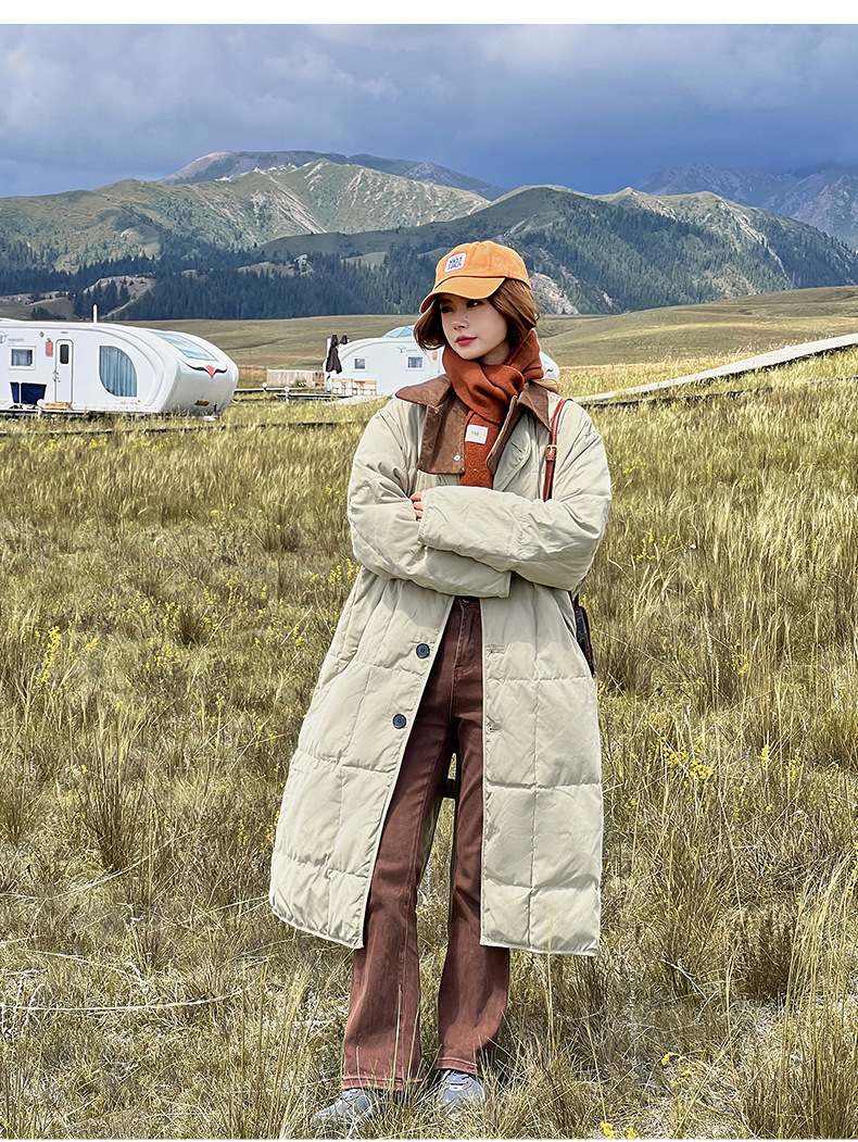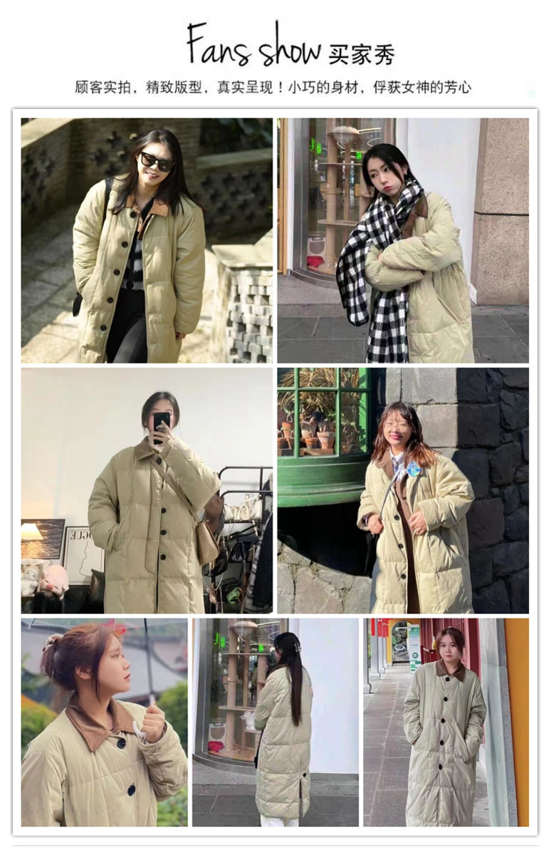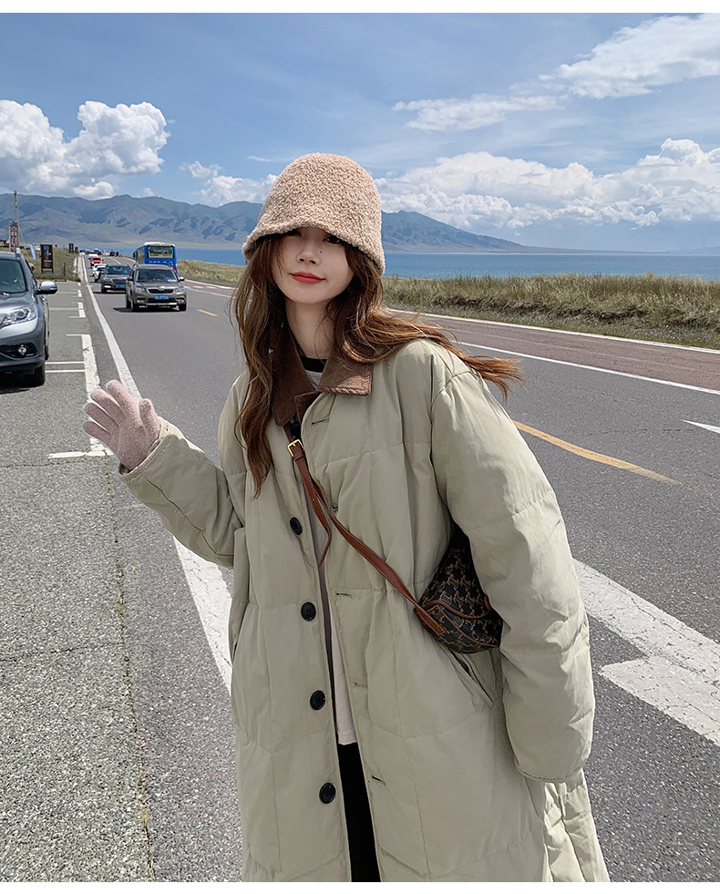 冬用中長丈コットンコート、韓国風小香風コットンジャケット、ゆったり厚手レトロ風コットンジャケット、カジュアルで万能なアウター