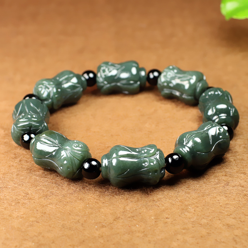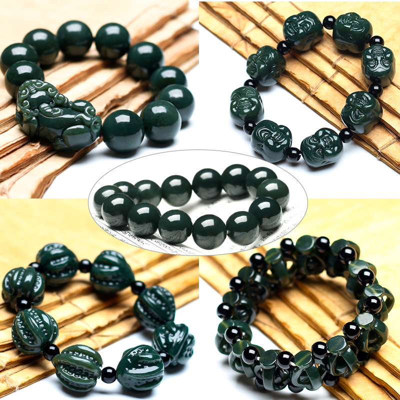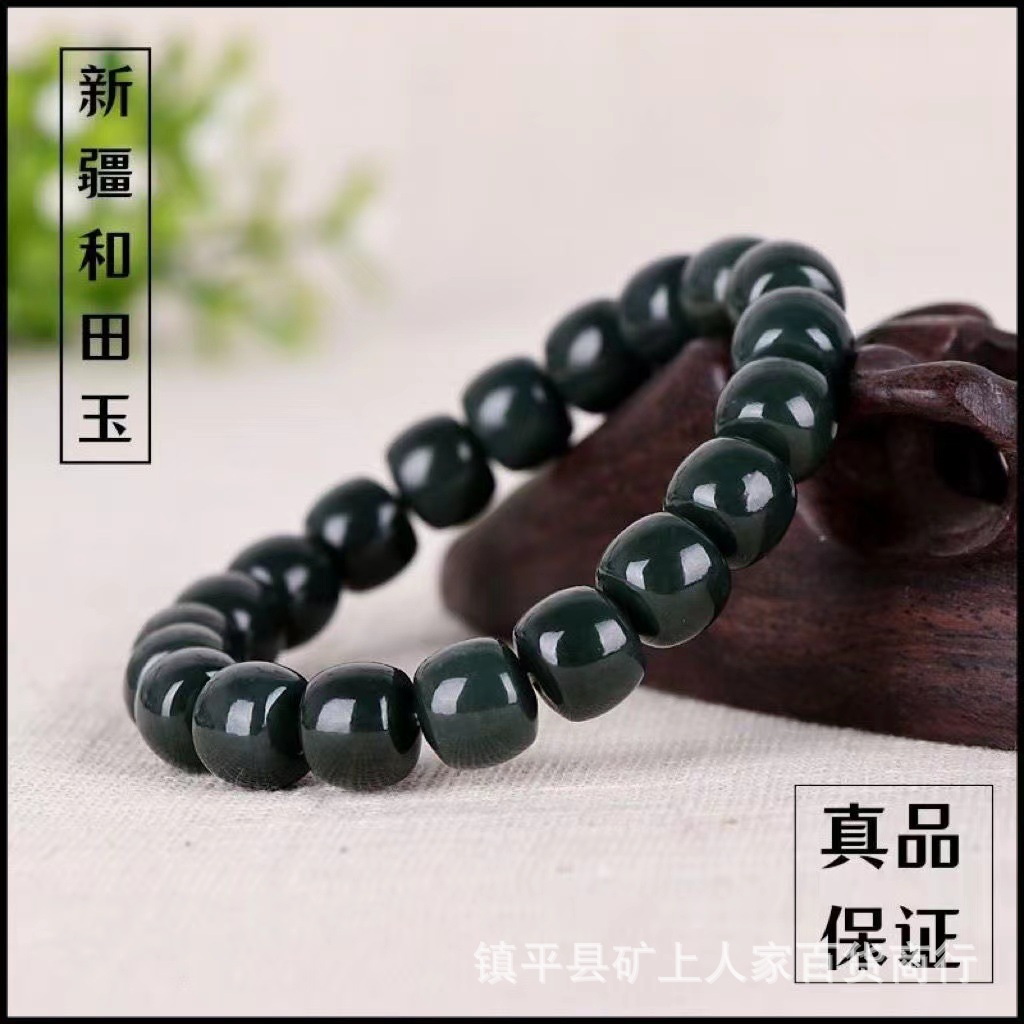 新疆玉と田玉のブレスレットの男の青玉の装飾品の古い型の珠の手は男女の金のブレスレットの墨玉の手は玉を隠します