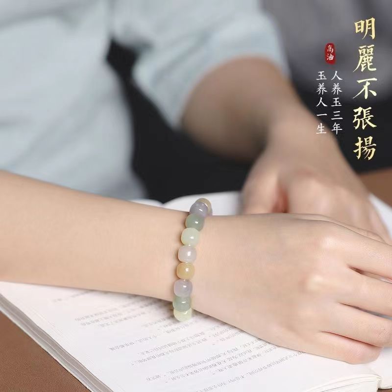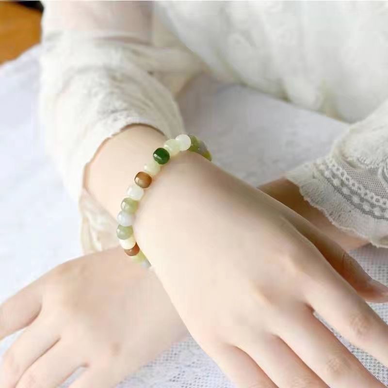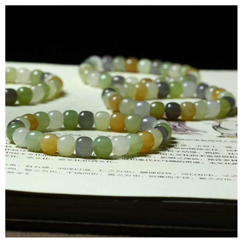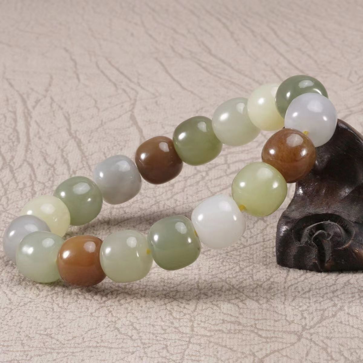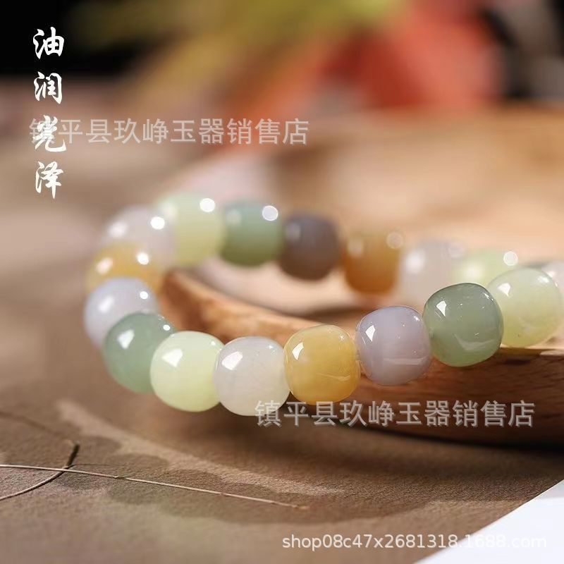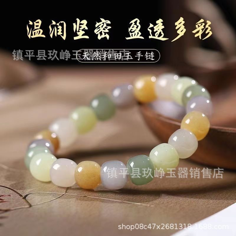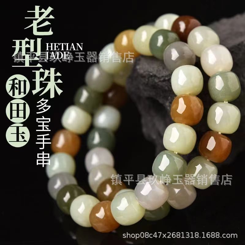 和田玉多宝手串男女モデル七彩老型珠老料7*8mmブレスレットは男女の友人に贈る