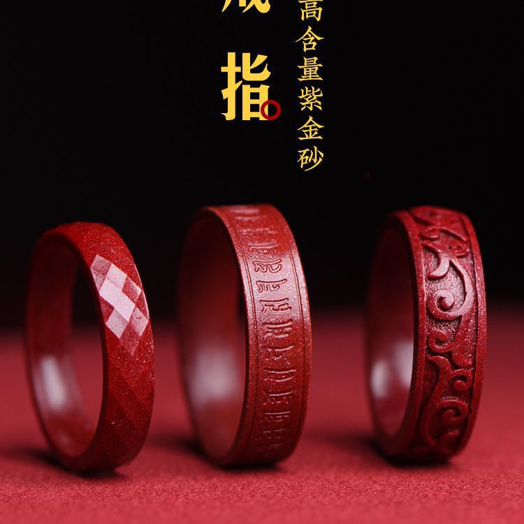 天然保真原鉱紫金砂指輪本命年高含有量朱砂指環男女金本命年アクセサリー