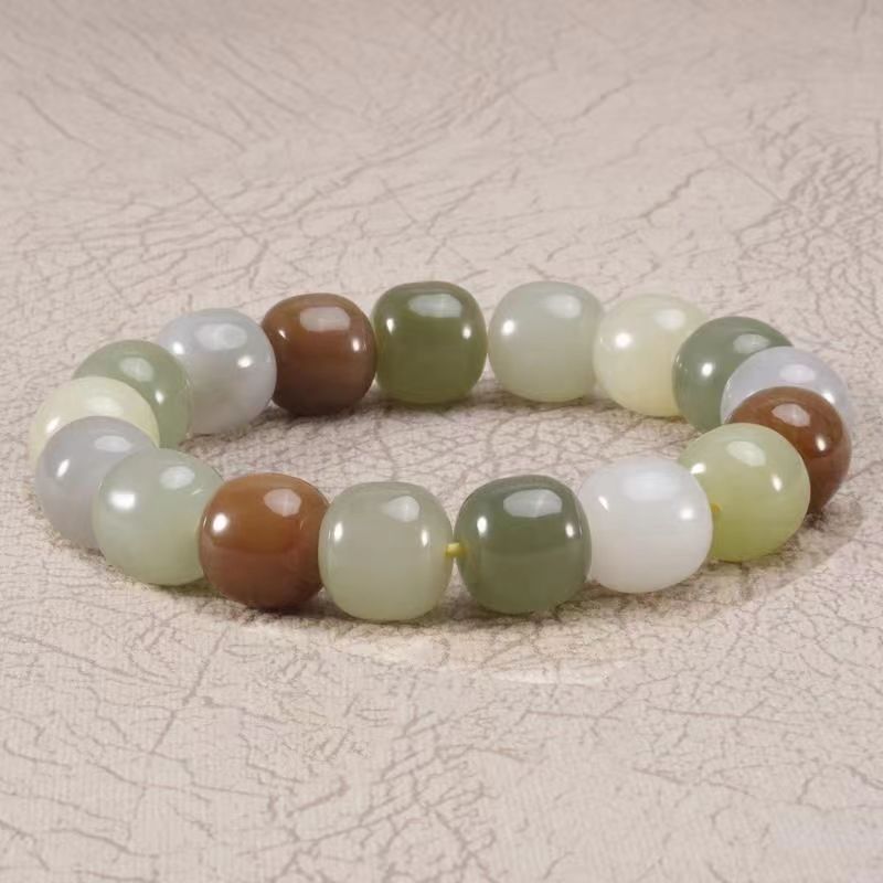 新疆和田玉多宝の手串のブレスレットの古い型の玉の男女の金の白玉の多彩なブレスレットのシングルリングの桶の玉の卸売り