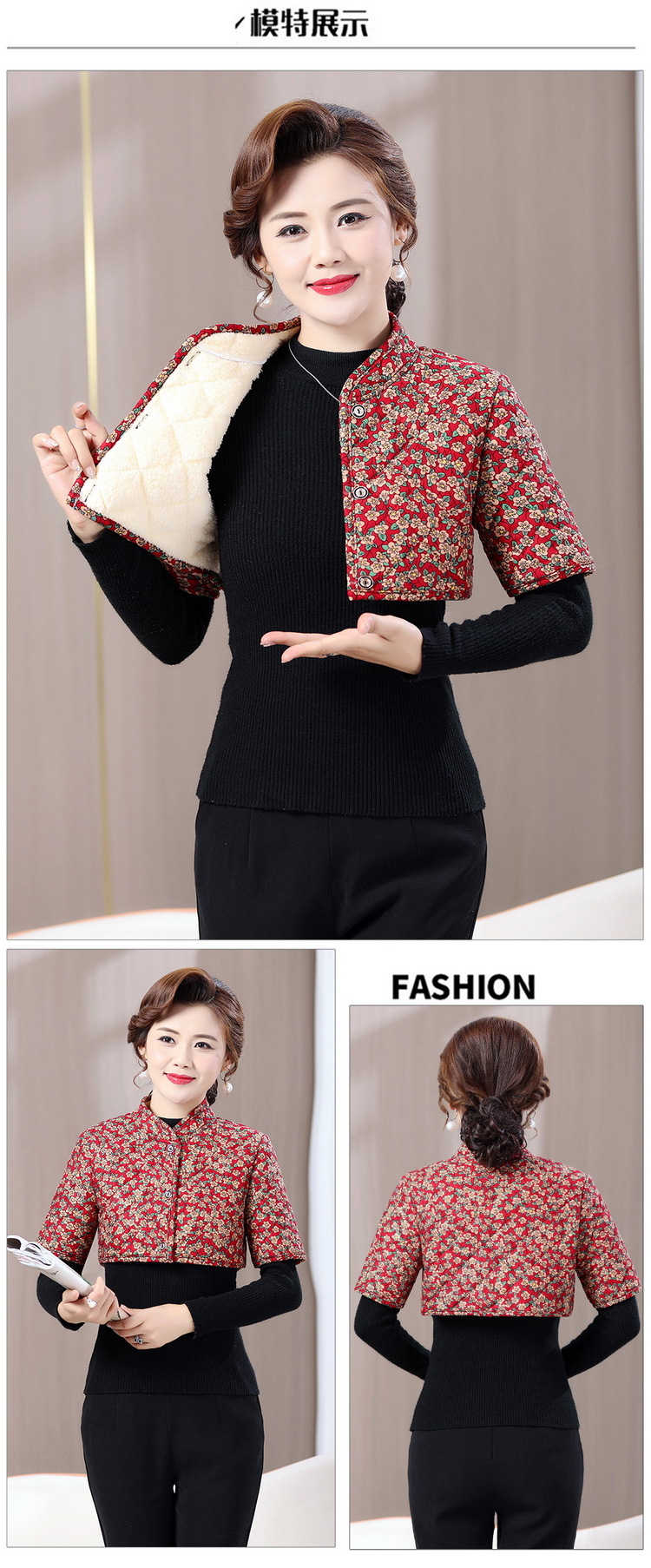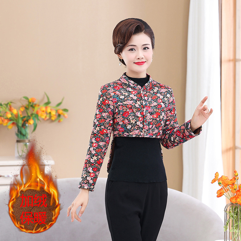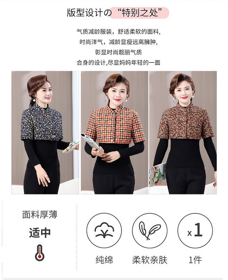 お母さんの秋冬のベルベットは肩を厚くして防寒しています。