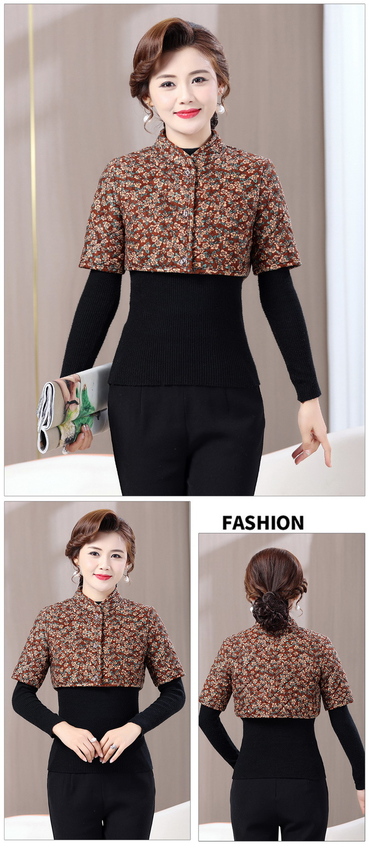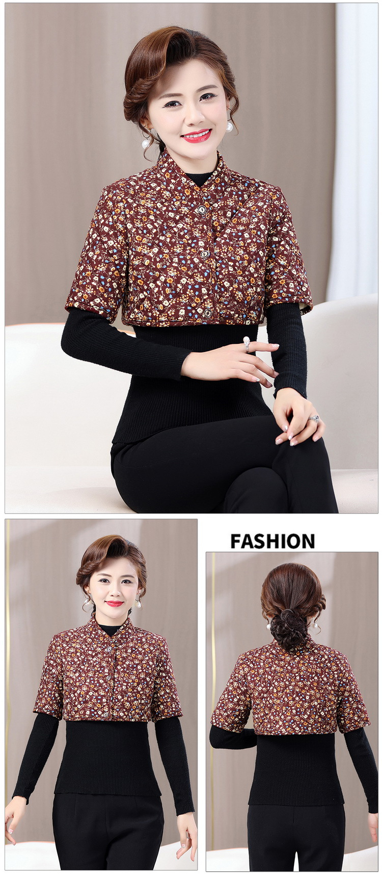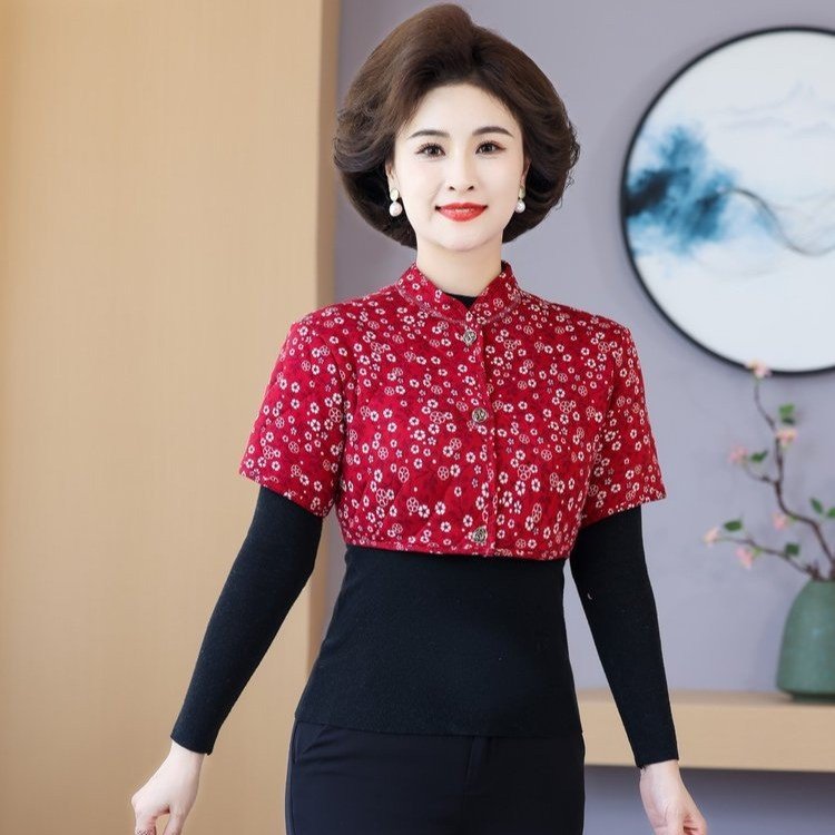 中高年のお母さんの中袖は肩をかぶって肩のベストをつけます。
