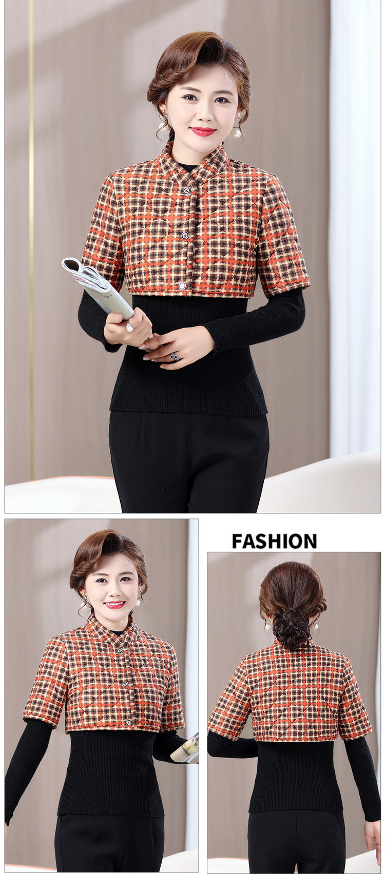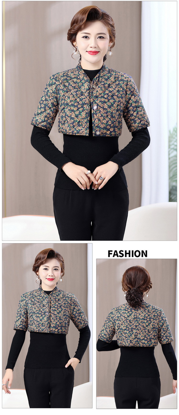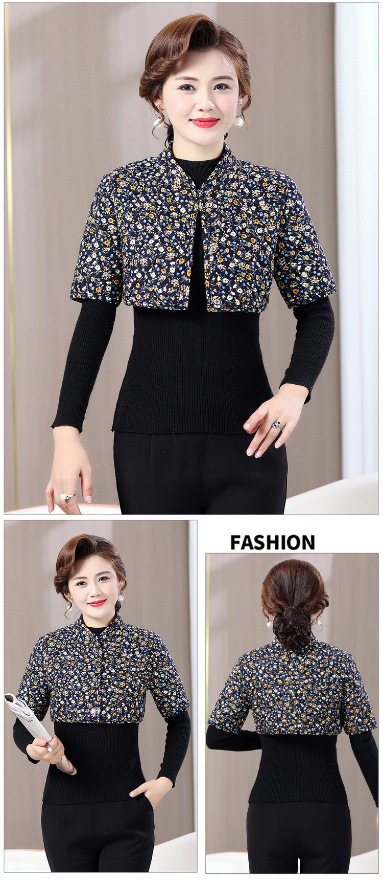 中高年のお母さんの中袖は肩をかぶって肩のベストをつけます。