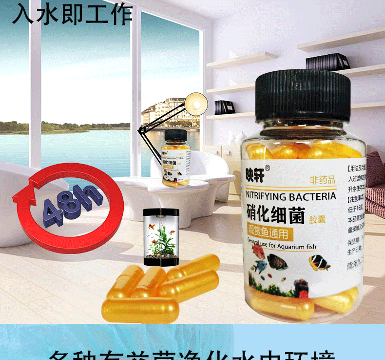 硝化细菌胶囊鱼缸去腥臭味净化水质打造空气缸降解氨氮观赏鱼通用